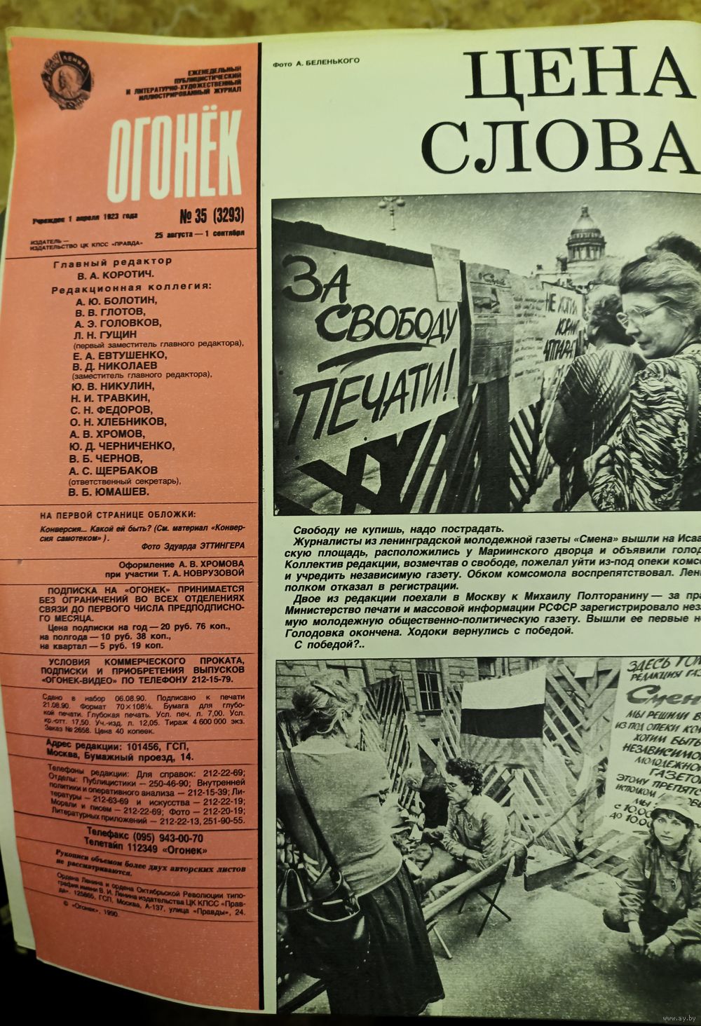 Журнал "Огонек". Номер 35.Август 1990г.