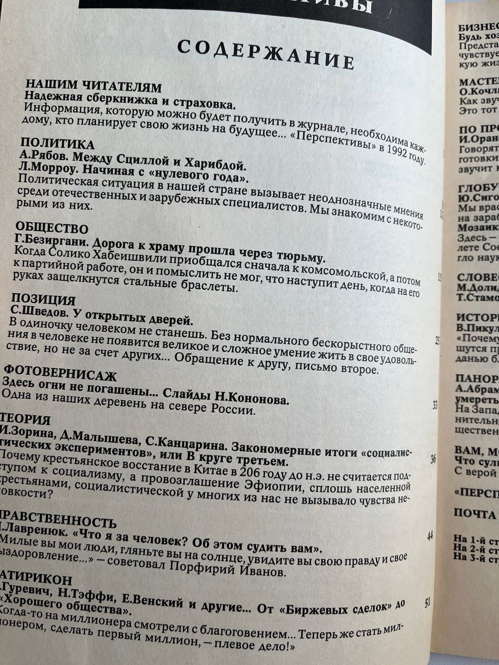 Журнал Перспектива. 1991 год