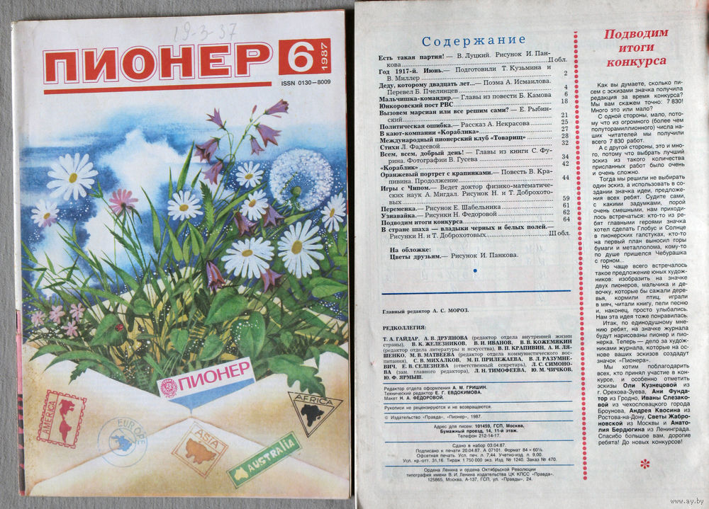видно на фото - размер 20см х 28см 66стр цветной 3 1987 - небольшая вырезка стр 47, 11-1991 - нет вкладки-плаката 31-34 стр. 6-1991 небольшая вырезка на стр 1( марка ) |
