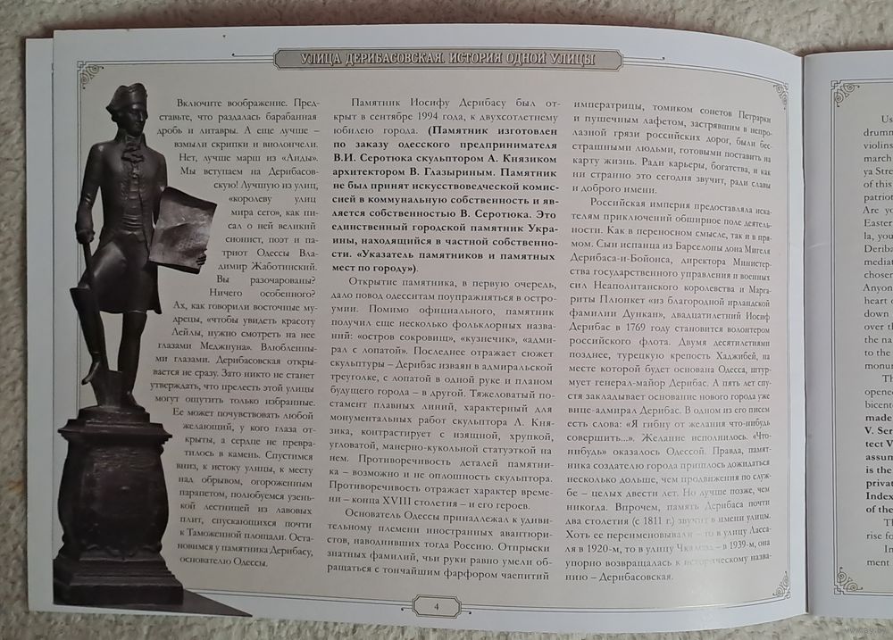 Красивый маленький журнал про Дерибасовскую улицу, на русском и английском языках, 50 страниц.