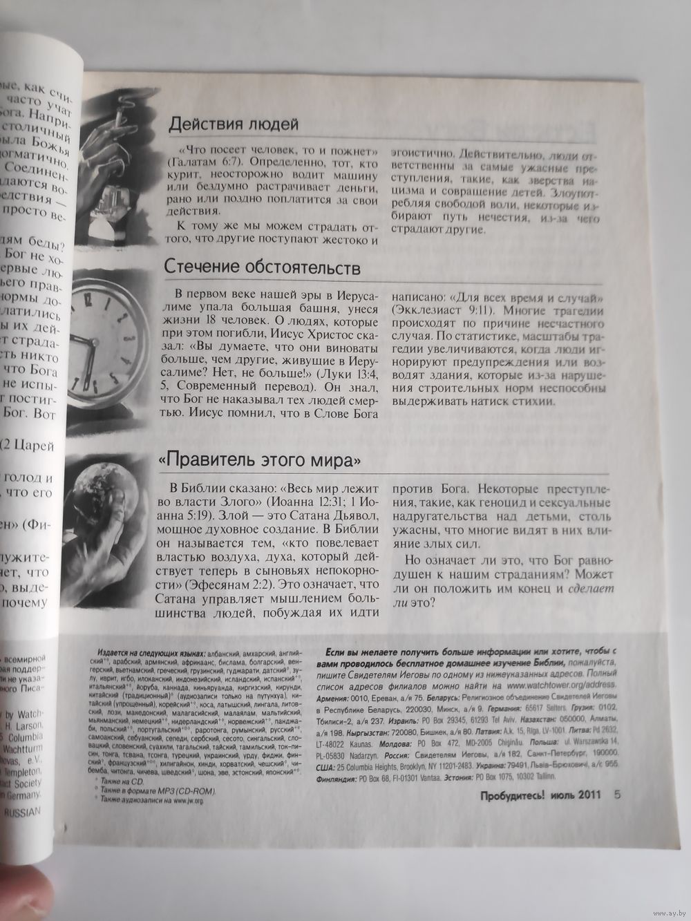 Это журнал для всей семьи. На его страницах рассказывается о жизни в различных странах, обсуждаются насущные проблемы и их решение, поднимаются вопросы науки и религии, анализируются мировые события и то, что за ними стоит. При этом статьи политически нейтральны и в равной степени уважительны ко всем народам и расам. Но самое главное, этот журнал укрепляет веру во Всевышнего Творца и в его замысел — положить конец несправедливости и беззаконию и в скором будущем установить на земле прекрасный новый мир.