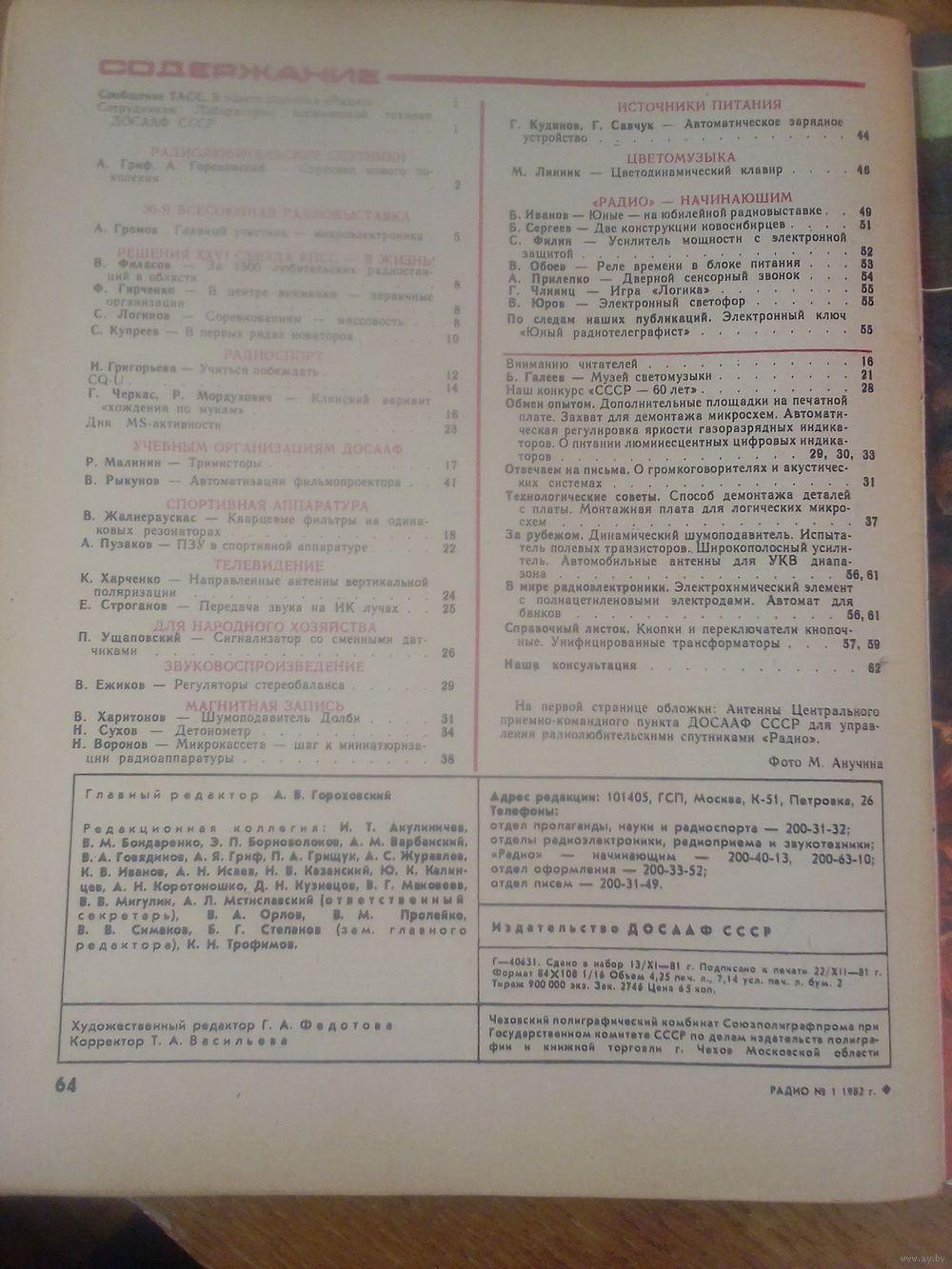 Журнал Радио 1982--1 выпуск.
