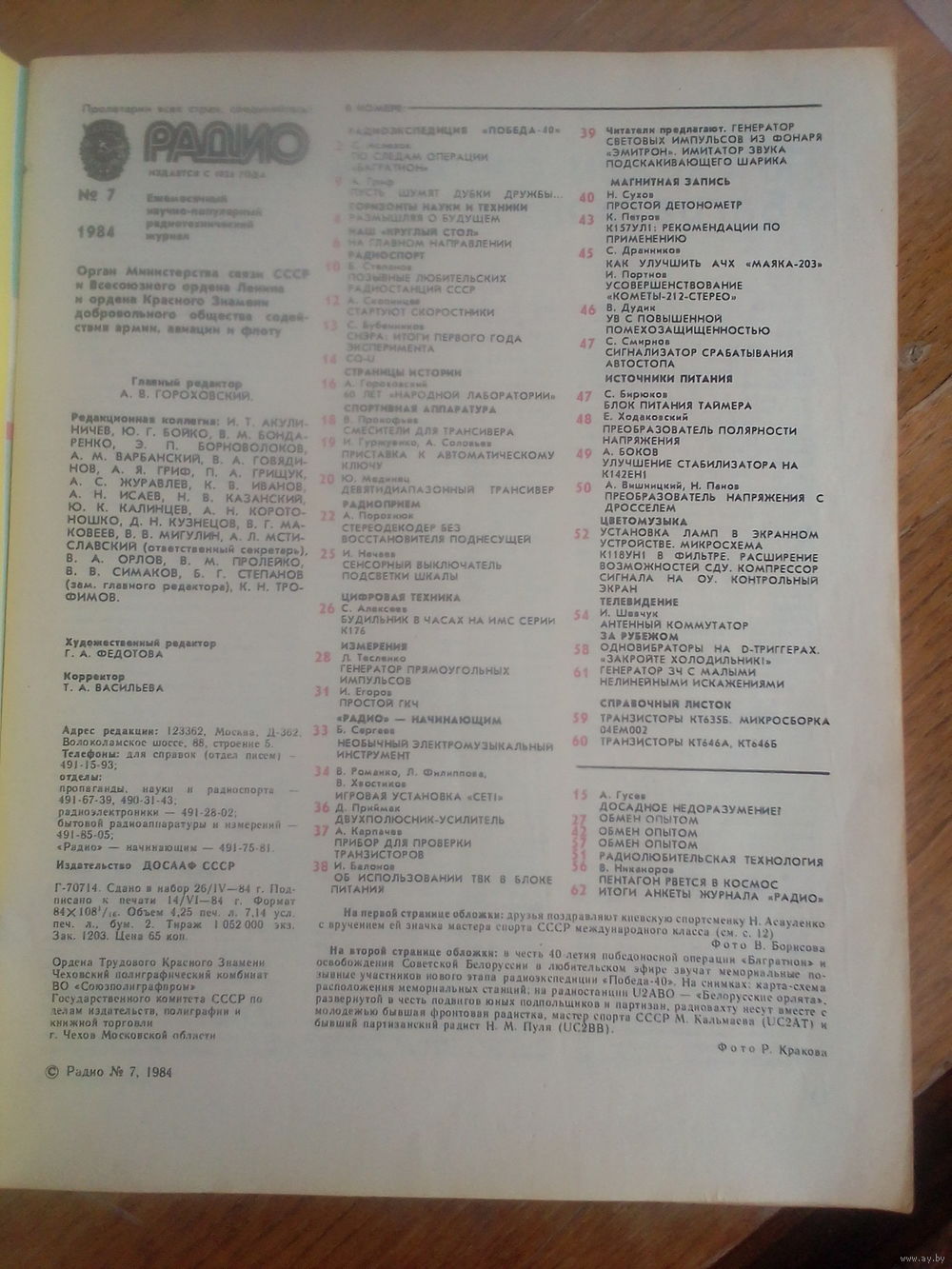 Журнал Радио 1984--7 выпуск.