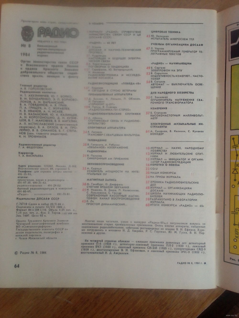 Журнал Радио 1984--8 выпуск.