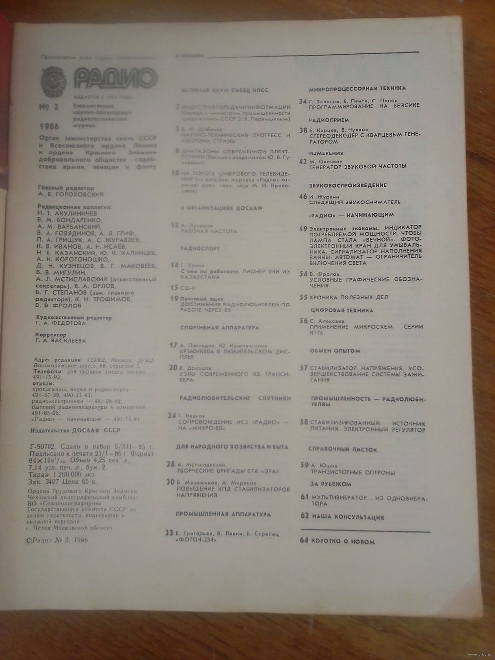 Журнал Радио 1986--2 выпуск.