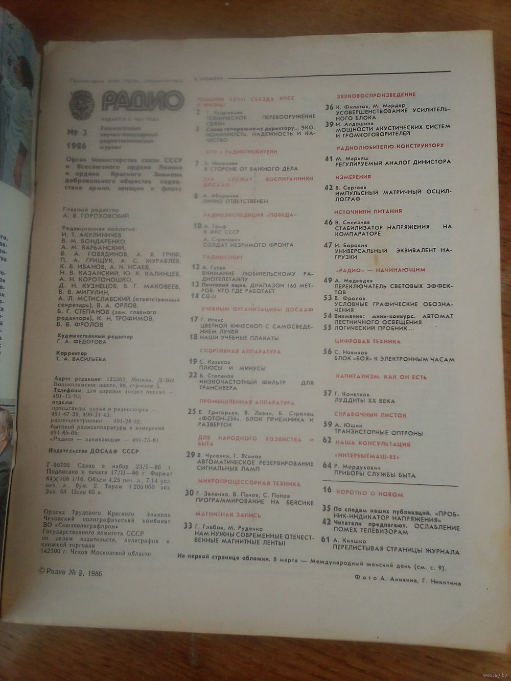 Журнал Радио 1986--3 выпуск.