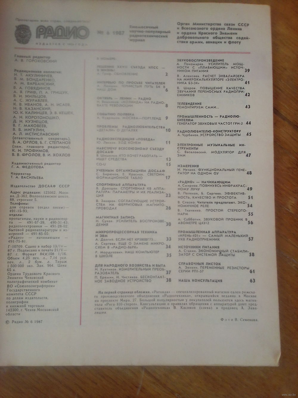 Журнал Радио 1987--6 выпуск