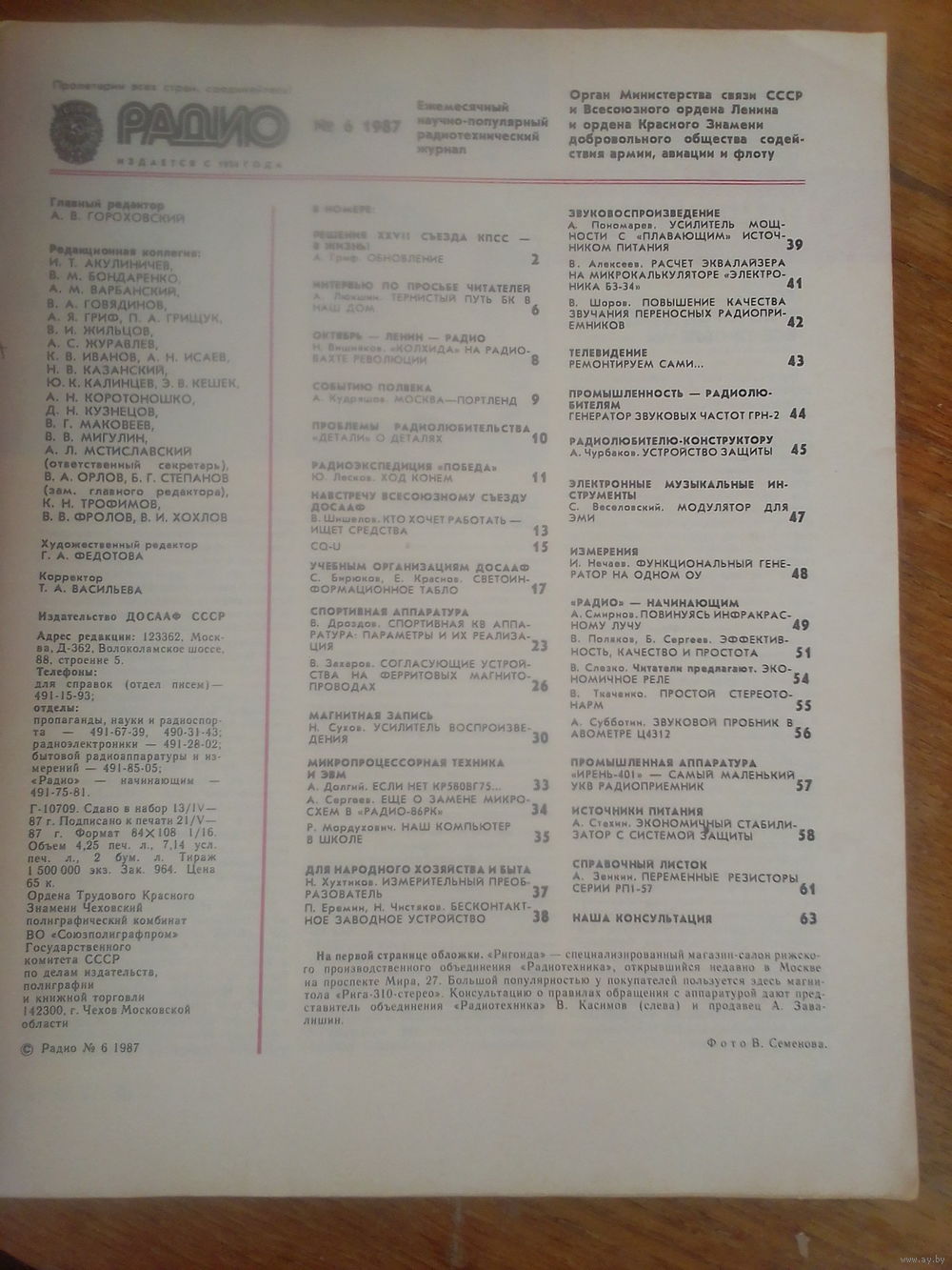 Журнал Радио 1987--6 выпуск.