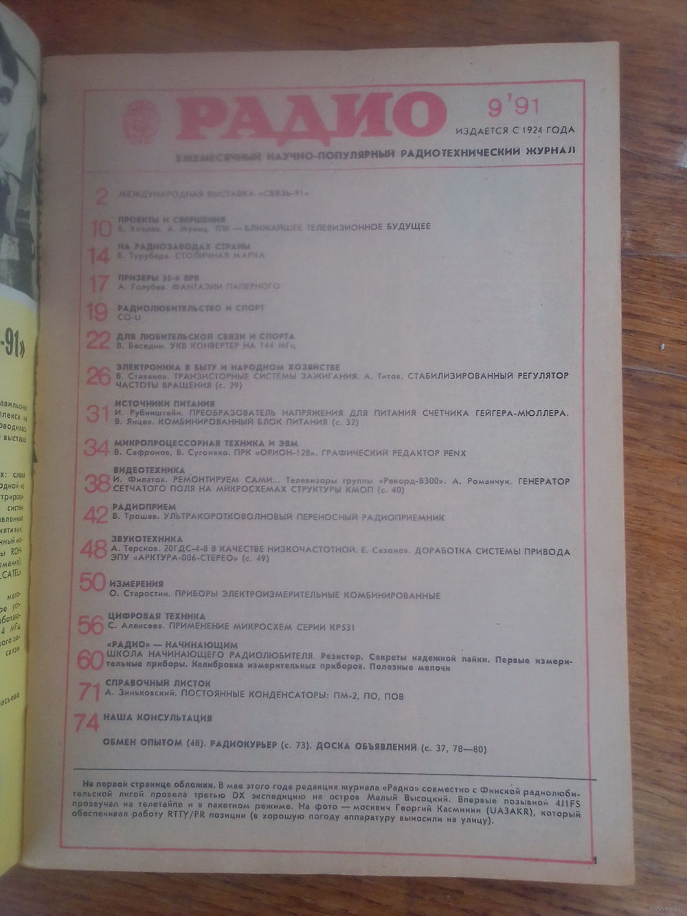 Журнал Радио 1991--9 выпуск.