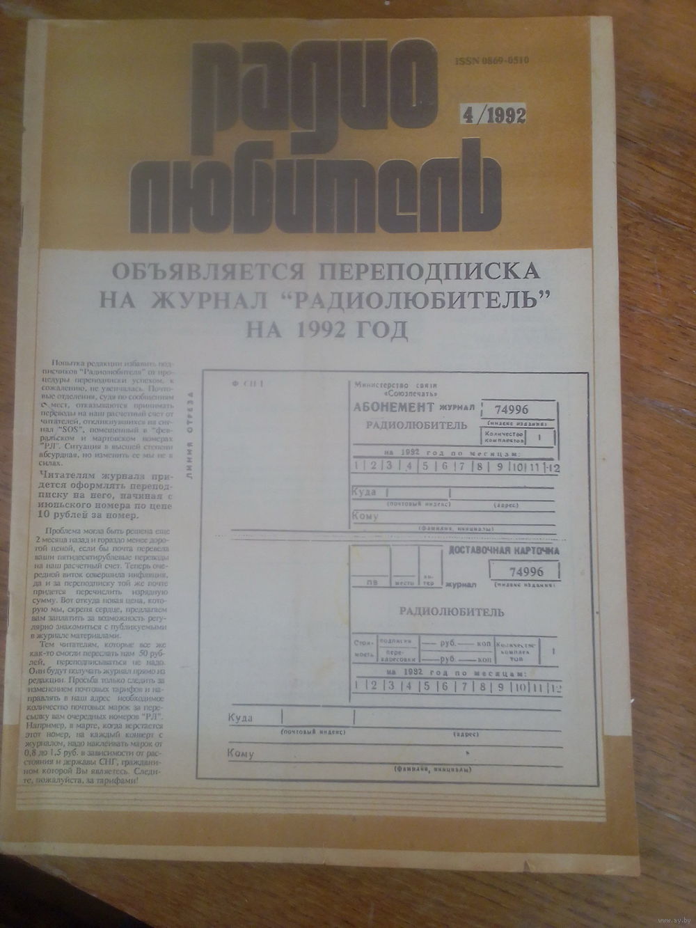 Журнал Радиолюбитель 1992--4 выпуск.
