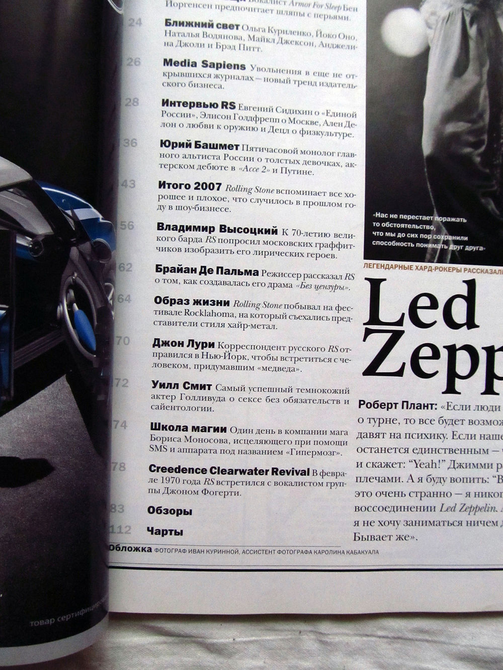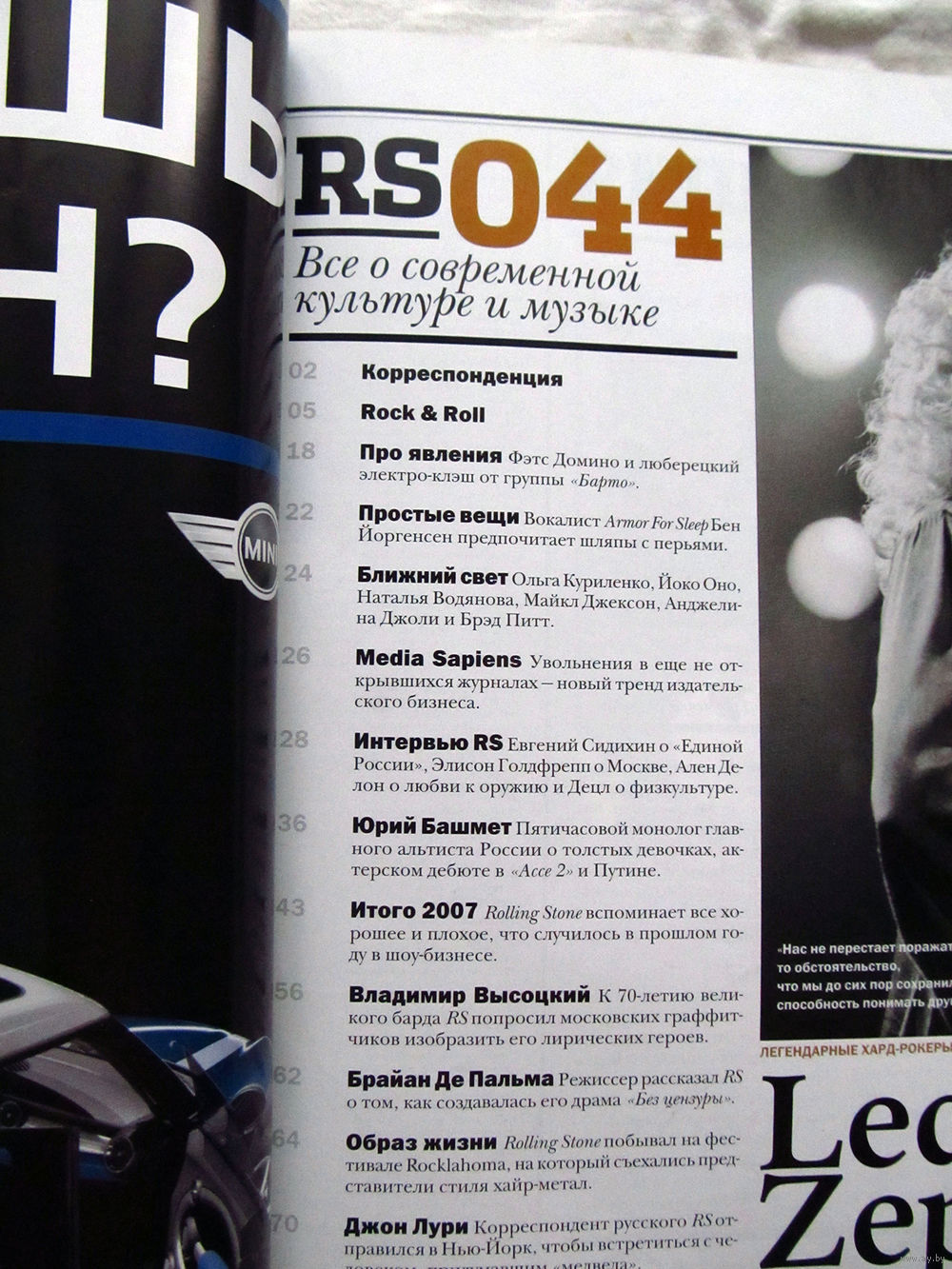 Журнал Rolling Stone Россия Номер 44 Фквраль 2008 Юрий Юашмет Владимир Высоцкий Сталлоне Ален Делон Децл Уил Смит Led Zeppelin Йоко Оно Анджелина Джоли Creedence Clearwater Revival
