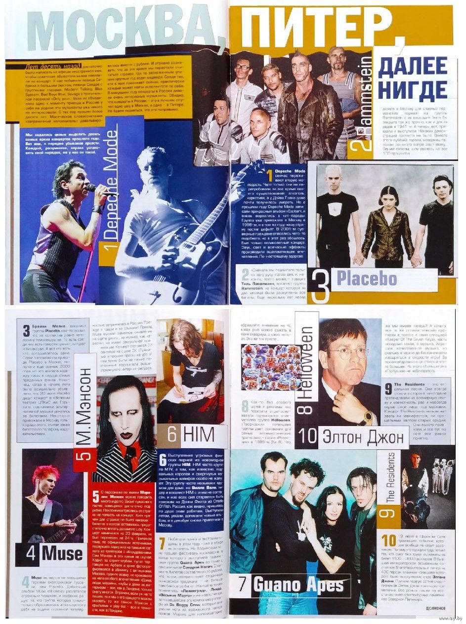 а также: Rammstein, Depeche Mode, Placebo, Бритни Спирс, Алия, Брюс Уиллис, Guano Apes и другие.