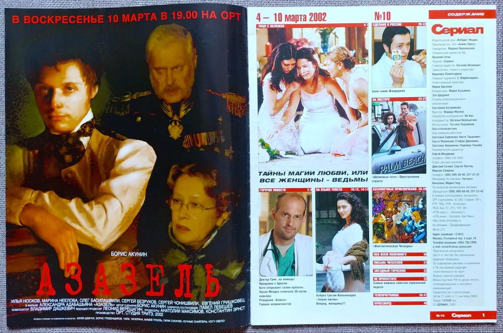 Журнал Сериал. Целый, с постером и тв-программой. Чистый кроссворд. В отличном состоянии, в программе есть маленькие пометки.