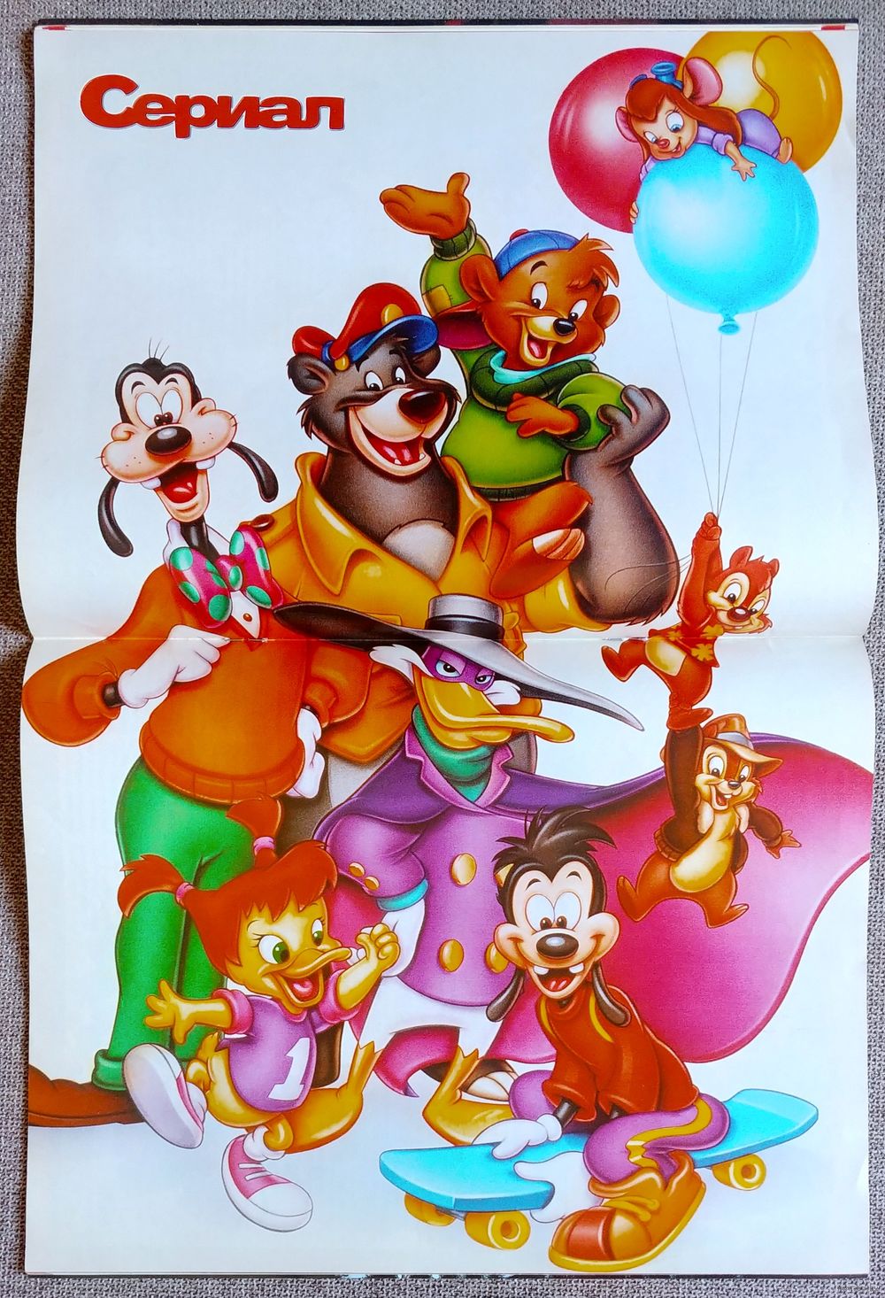 Постер: Гуфи, Балу, Чёрный плащ, Чип, Дейл и другие персонажи мультсериалов Диснея (на скрепках, никогда не вынимался и не использовался).