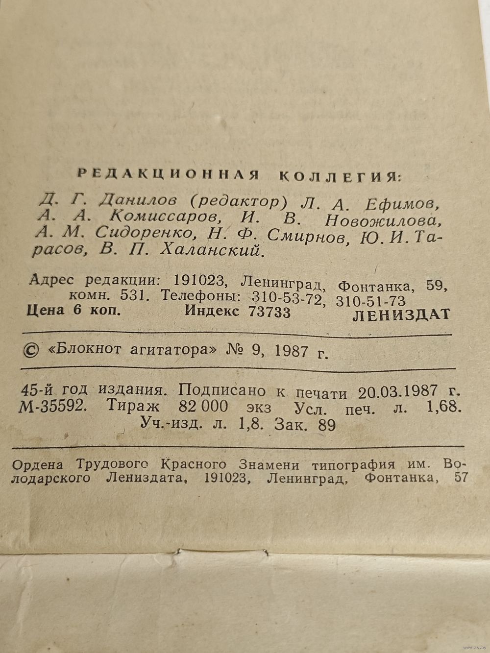 номер 9 журнала «Блокнот агитатора» за март 1987 года. СССР. Состояние на фото