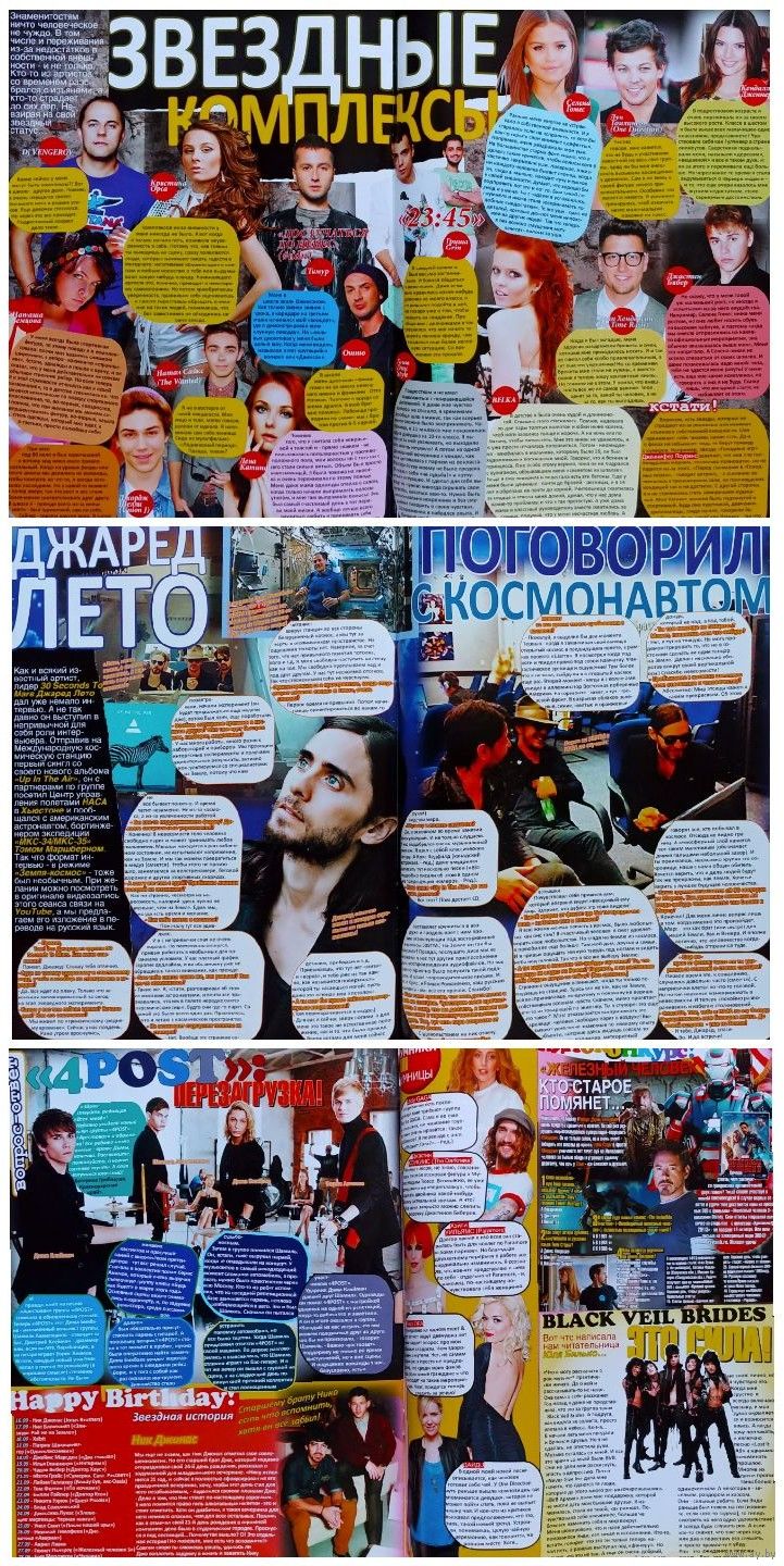 Постеры: Селена Гомес / Пинк, Bring Me the Horizon / Нервы, One Direction / Орудия смерти: Город костей; суперпостеры: Green Day / Виолетта (на скрепках, никогда не вынимались и не использовались).