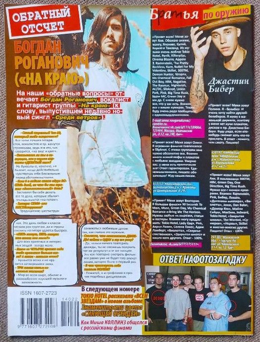Постеры: Белла Торн / Шеннон Лето, Найл Хоран / Сверхъестественное, R5 / Skillet; суперпостеры: Джерард Уэй / Tokio Hotel (на скрепках, никогда не вынимались и не использовались).