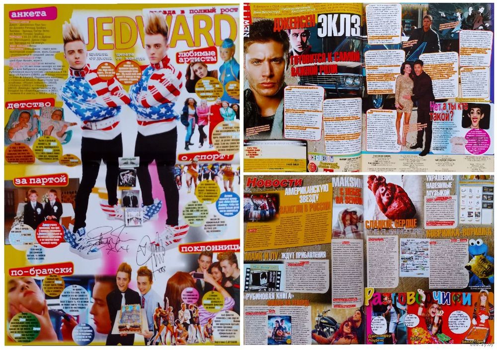 Постеры: One Direction / Майли Сайрус, Максим / Green Day, Пинк / Джастин Бибер; суперпостеры: Джаред Лето / Дженсен Эклс - Сверхъестественное (на скрепках, никогда не вынимались и не использовались).