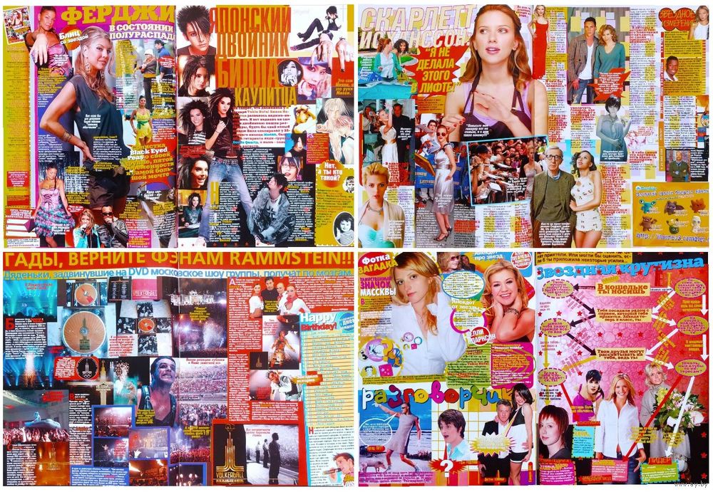 Постеры: Аврил Лавин / Эми Ли, Дима Билан / Эшли Симпсон, Джонни Депп / Скарлетт Йоханссон, Rammstein / Black Eyed Peas; суперпостеры: Остаться в живых LOST / Tokio Hotel (на скрепках, никогда не вынимались и не использовались).