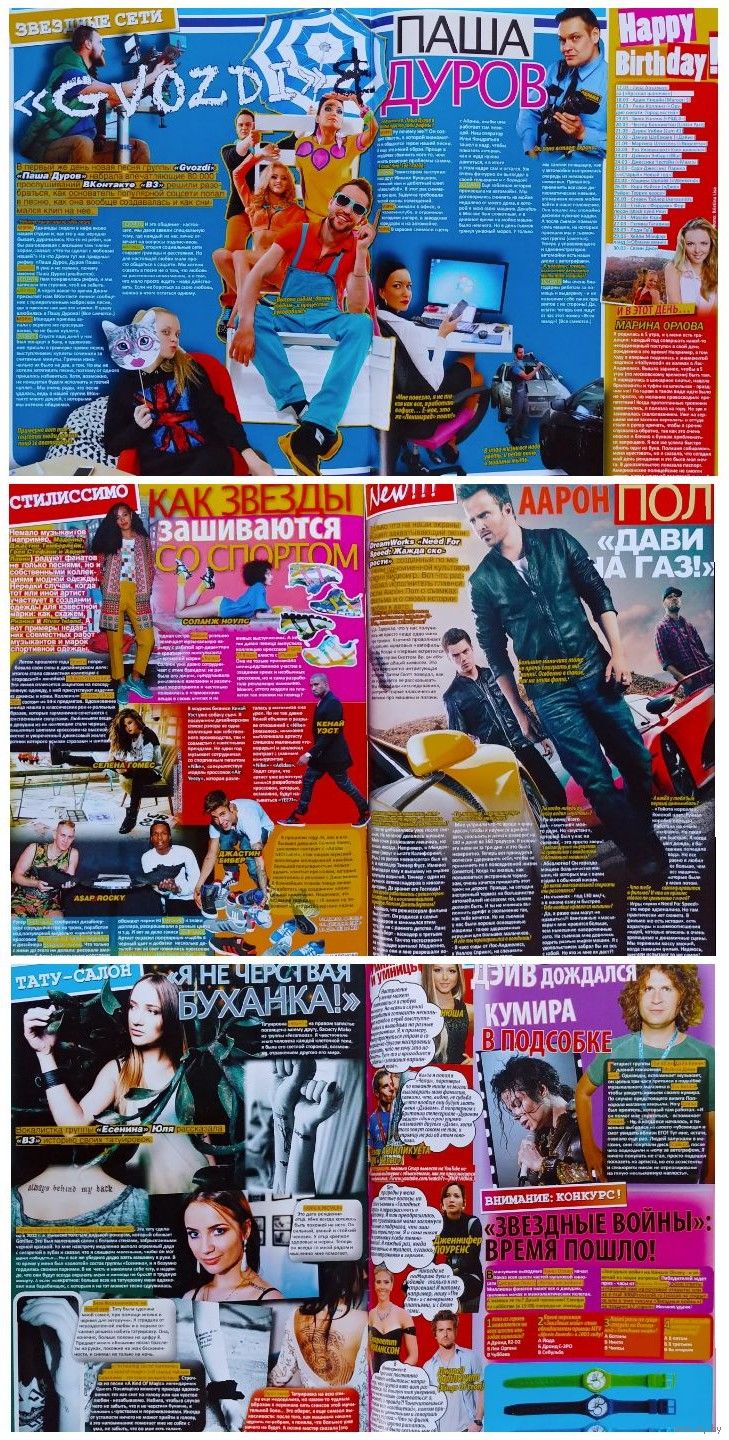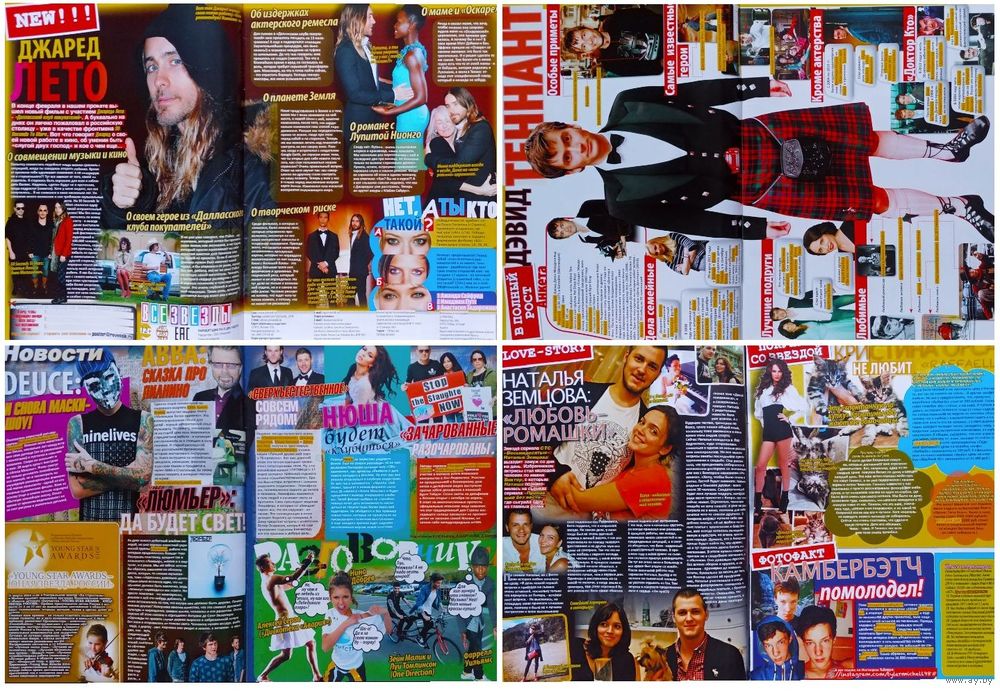 Постеры: Нюша / Тайлер Хеклин, Доктор Кто / Джаред Лето, Need For Speed Жажда скорости / Аврил Лавин; суперпостеры: Сверхъестественное / Шерлок (на скрепках, никогда не вынимались и не использовались).