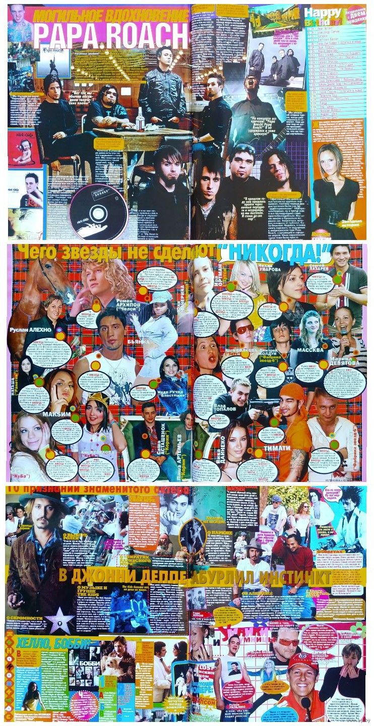 Постеры: Black Eyed Peas, Аврил Лавин / Пинк, Pussycat Dolls / Papa Roach, Джонни Депп / Тилль Линдеманн;