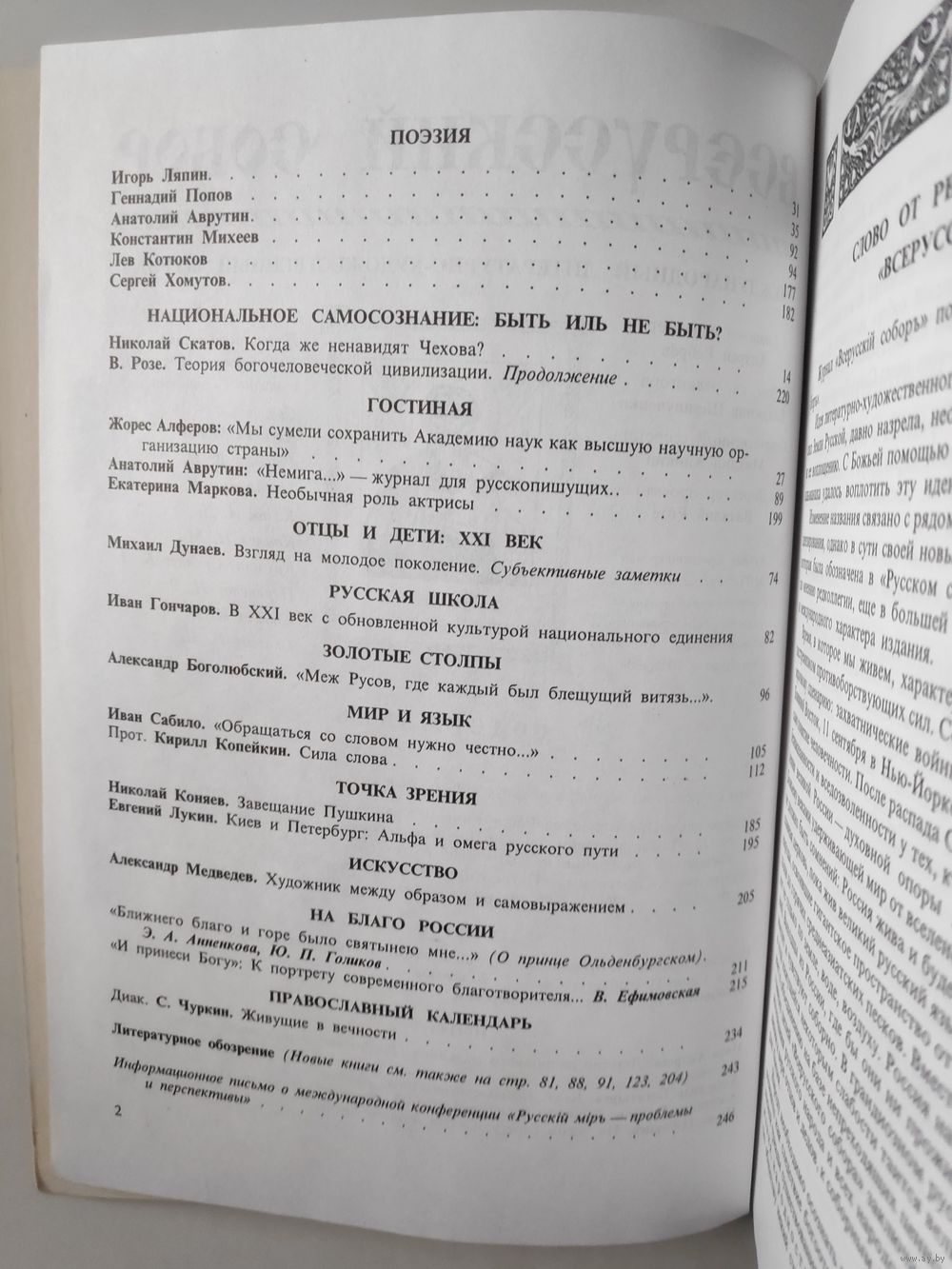 Материалы, публикуемые в Международном литературно-художественном журнале "ВСЕРУССКIЙ СОБОРЪ" отвечают новым тенденциям, утверждающим идеи державного созидания, необходимые российскому обществу. Они могут найти применение как основа при составлении учебных программ и пособий для духовных школ Санкт-Петербурга, нашей страны и Зарубежья, а также для оказания помощи работникам образовательных учреждений в учебном предмете "Православная культура".