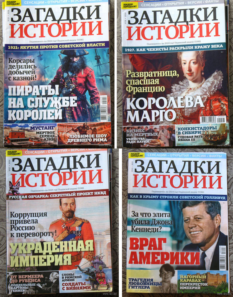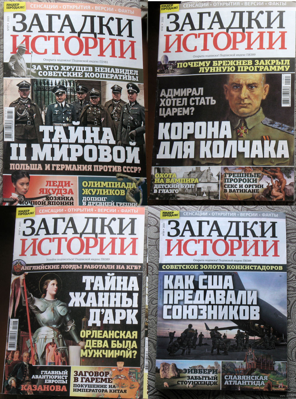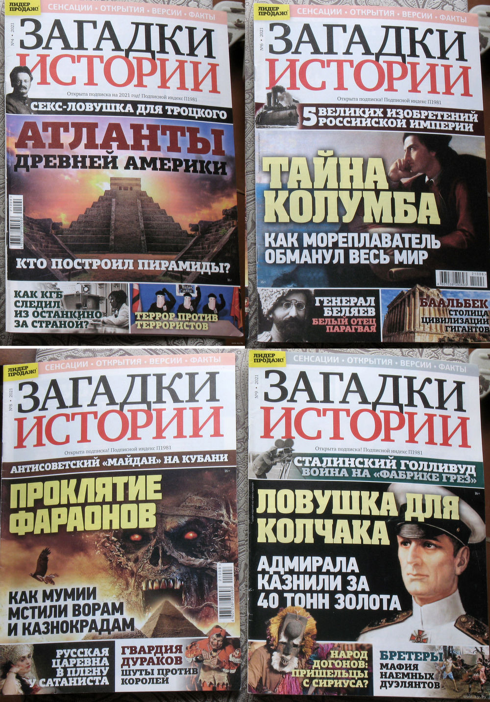 Журнал Загадки истории номера 1-2,4,6,8,9,11,14,15,18,19,20,22,23,26,29,31,32,34,36,37,39,41,47 2021 номера 40,43 2023 номера 27,28,29 2024