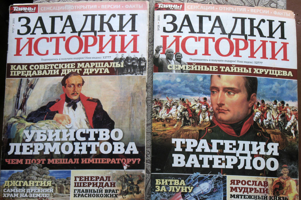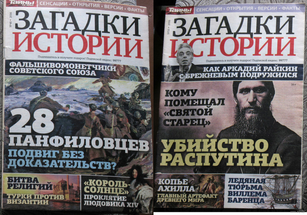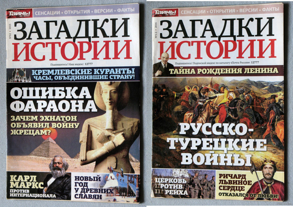 Журнал Загадки истории номера 3,22,27,28,30,33,34,42,52 2015 номера 1-2,35,39,48,50 2016