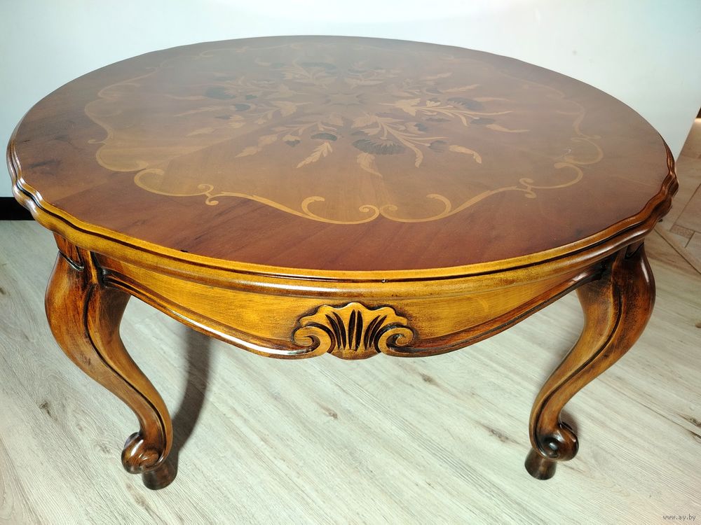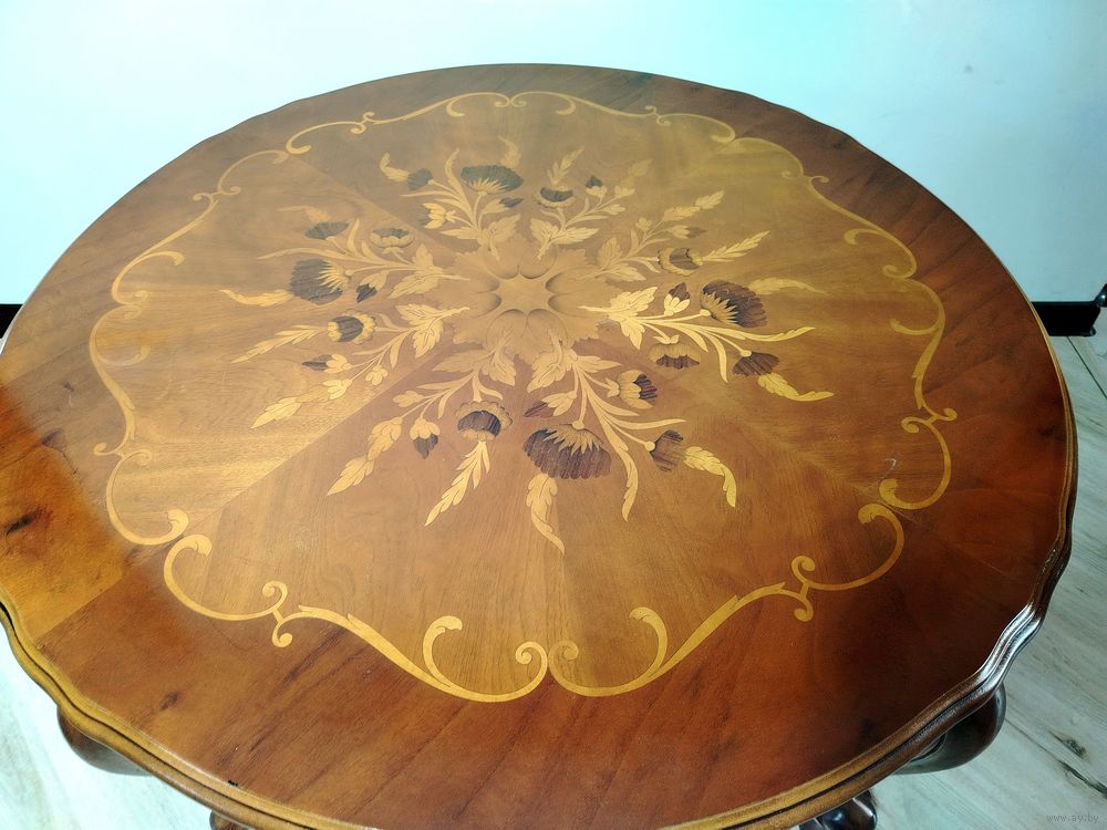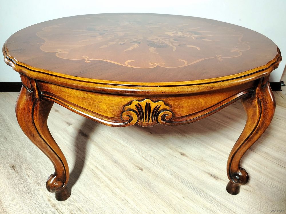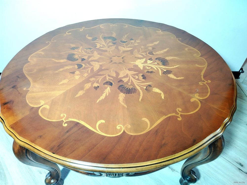Журнальный столик. Европа. Массив дерева, техника маркетри. Высота 45 см столешница диаметр 80 см.
