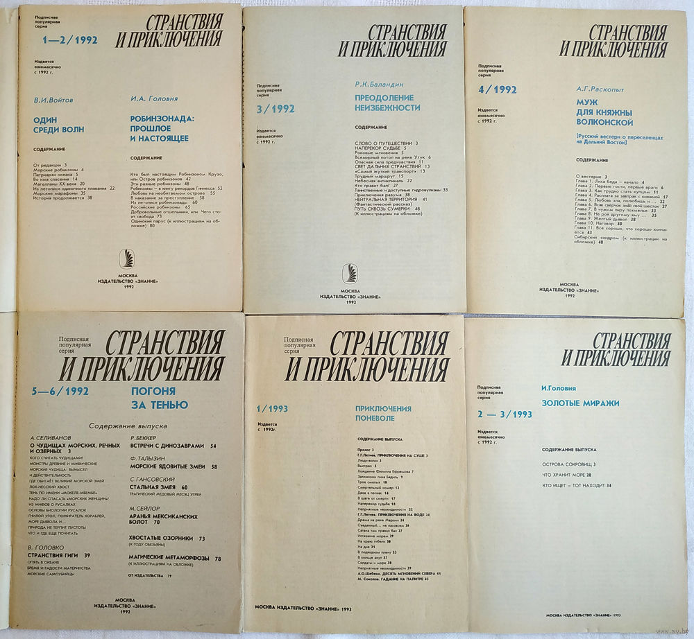 Комплект журналов "Странствия и приключения" 1992-1-6, 1993-1-3