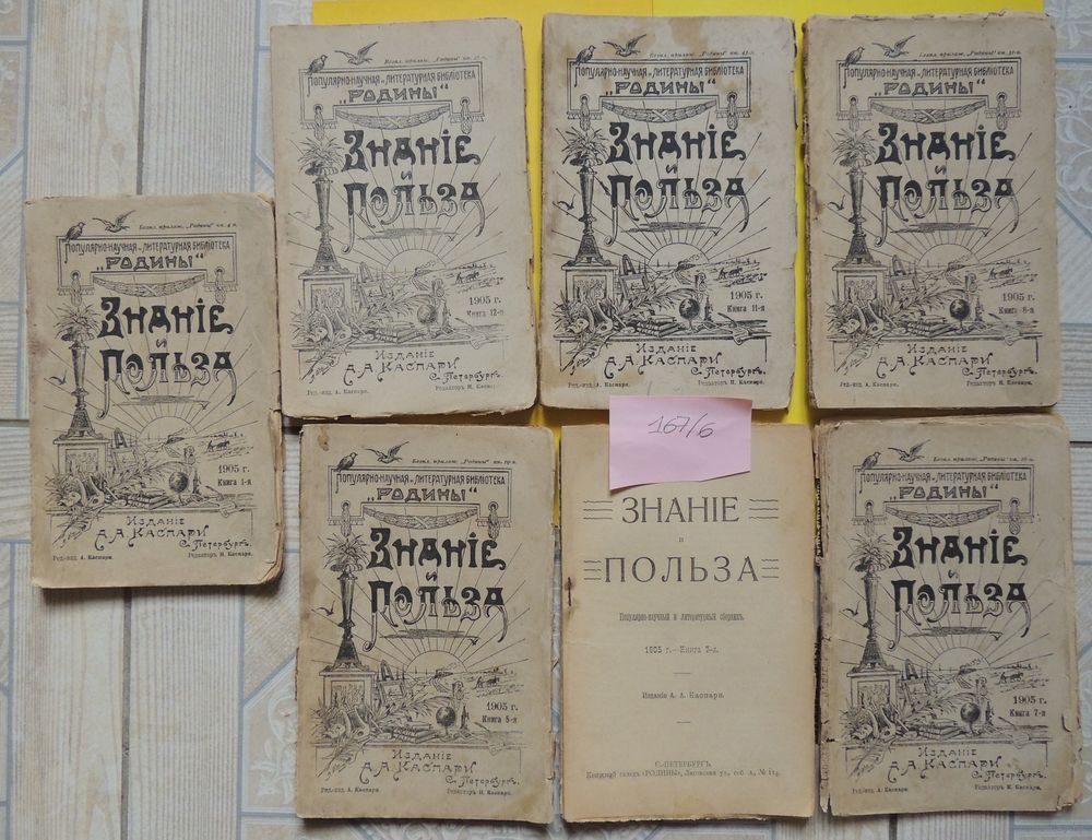 Журналы "Знание и польза", 1905 г., книга номер 1, 5, 7, 8, 11, 12. Цена за единицу
