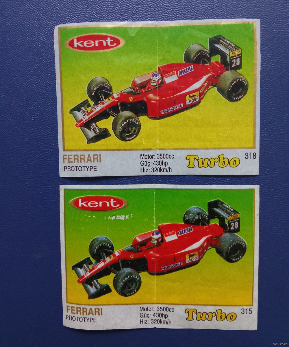 Фантики - вкладыши жвачки Turbo ( Турбо ) Жёлтый Ошибка нумерации 315/318.