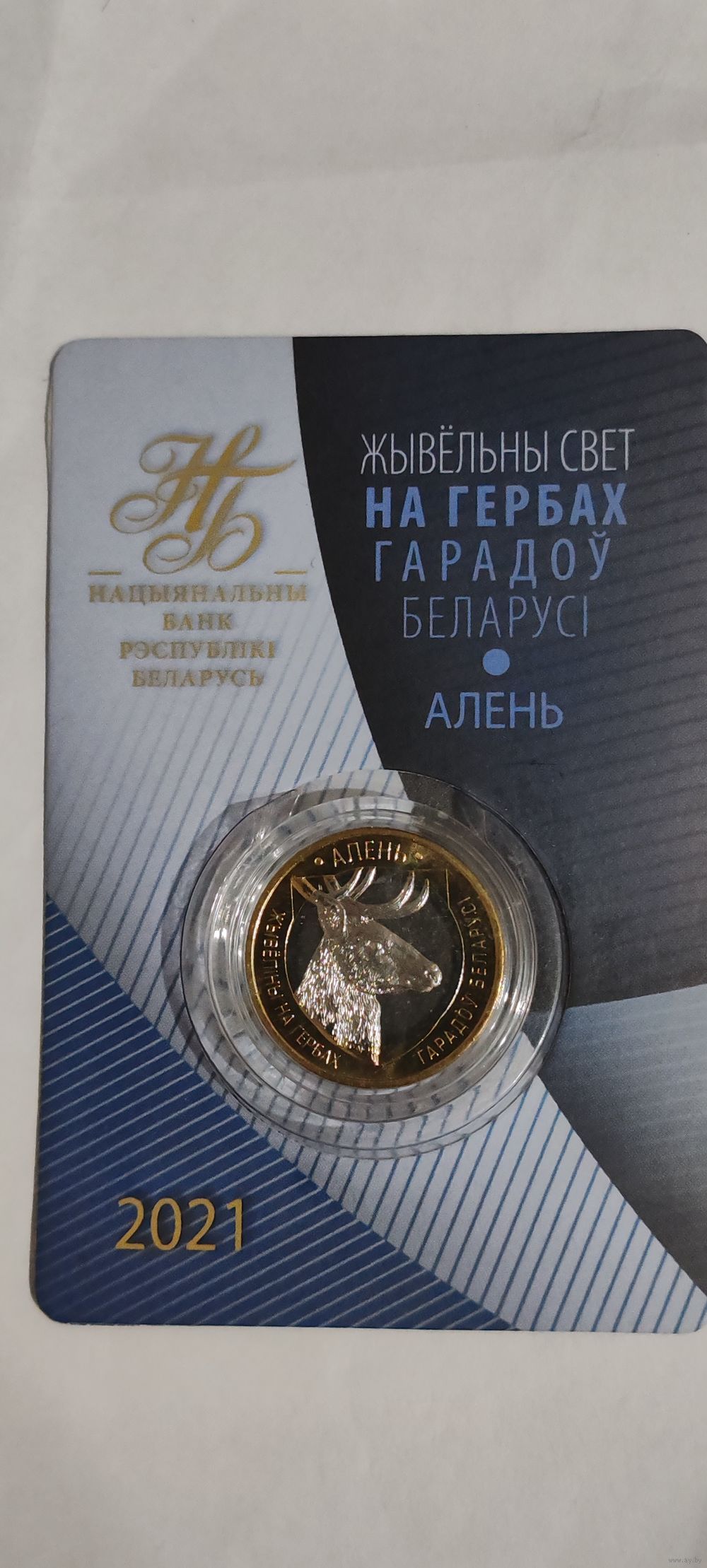 Жывёльны свет на гербах Беларуси 2 рубля Алень 2021г