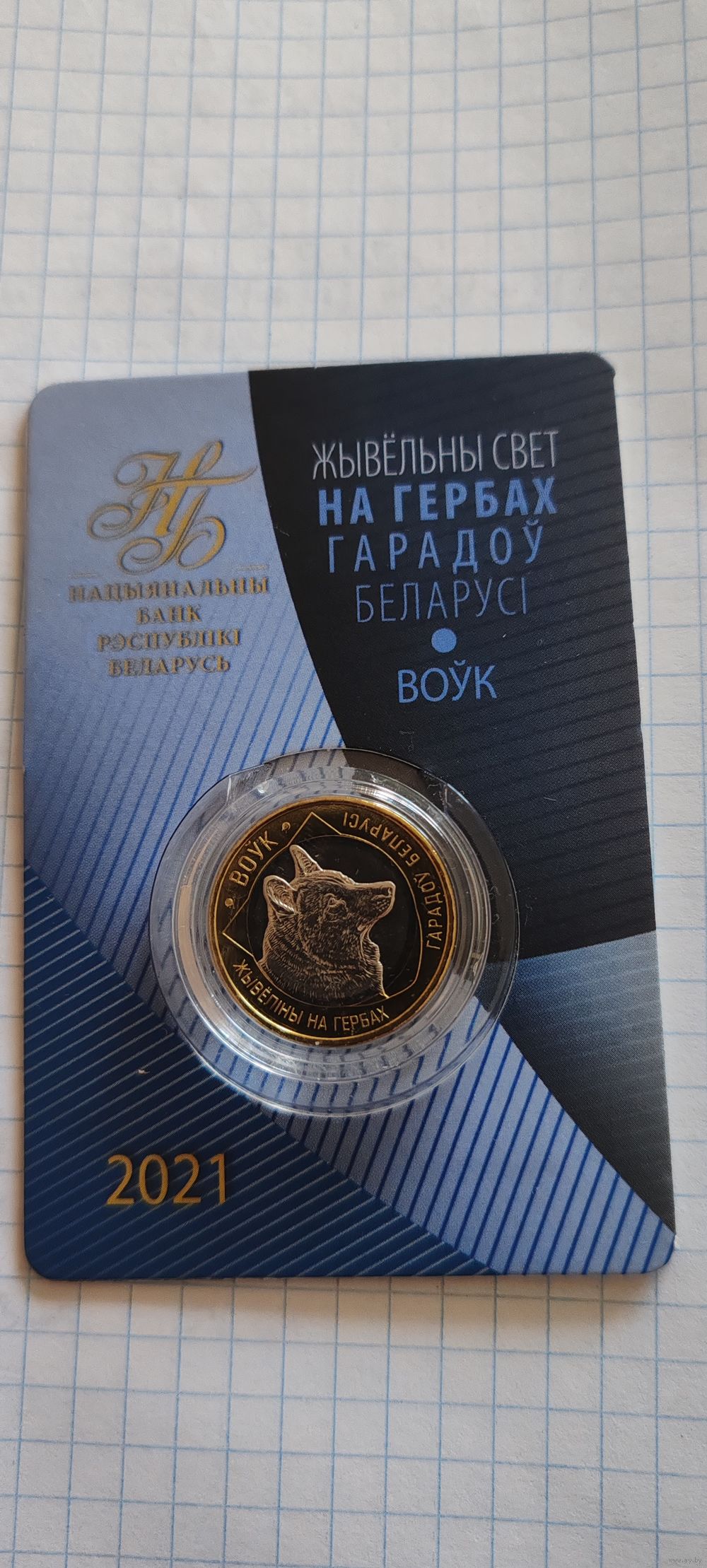 Жывёльны свет на гербах городов Беларуси ВОЛК 2 рубля 2021г