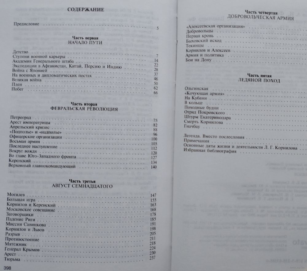 Тираж 5000 экз. 400 стр. Книга посвящена судьбе харизматического лидера русской контрреволюции — генерала Лавра Георгиевича Корнилова. Казалось, судьба готовила его к тому, чтобы возглавить Россию в самый переломный период ее истории. Выходец из бедной казачьей семьи, благодаря таланту и трудолюбию получил блестящее военное образование. Смелый и наблюдательный исследователь Азии, разведчик, приобрел доверие и уважение простых казаков и западных дипломатов. Генерал, завоевал авторитет мужеством на фронтах Первой мировой; и возглавил русскую армию летом 17-го… В августе того же года он безуспешно попытался остановить сползание к большевистскому перевороту (Корниловский мятеж), в декабре — встал во главе Добровольческой армии на Юге России, а весной 18-го погиб… Авторы книги на основе широкого круга уникальных архивных источников и литературы впервые попытались объективно раскрыть причину успехов и неудач яркой личности генерала Корнилова.