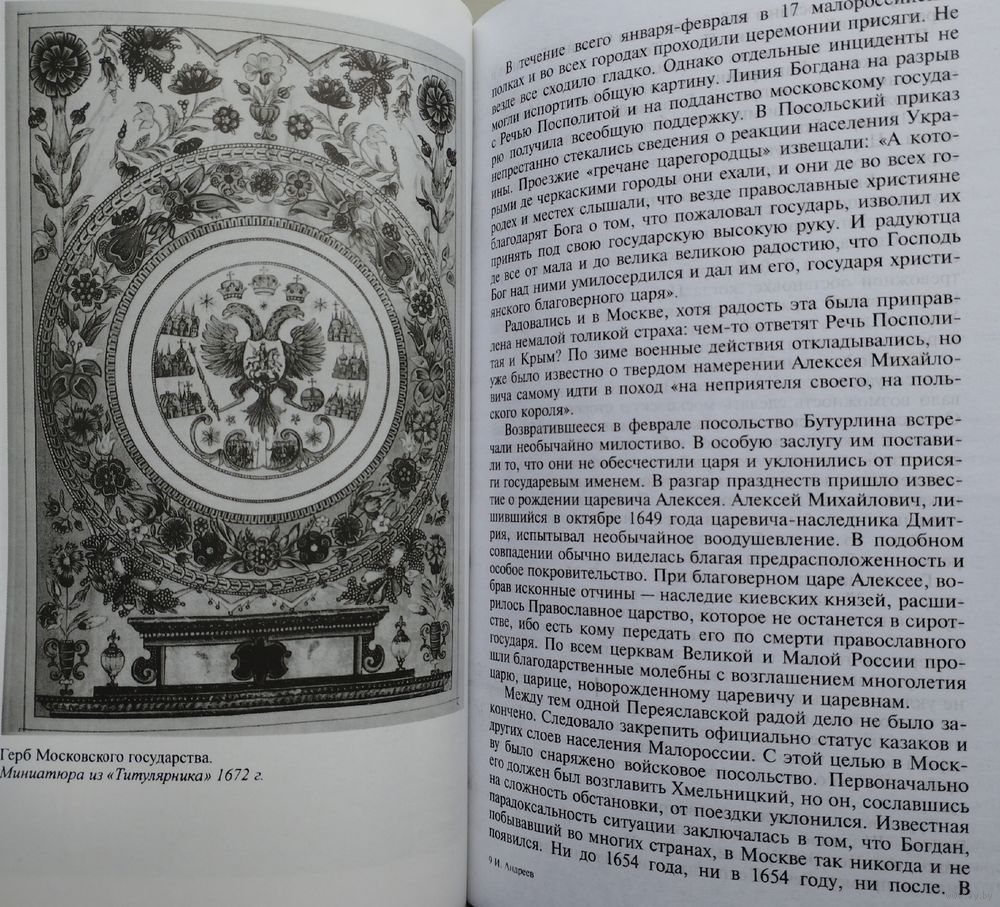 Тираж 8000 экз. 640 стр. Книга Игоря Андреева важна тем, что читатель постепенно все глубже знакомится с реально жившим человеком, Алексеем Михайловичем Романовым. Он узнает о его внешности, пристрастиях, любви к соколиной охоте, почти равнозначной любви к семье, жене и детям. Перед читателем Алексей Михайлович предстает во всей полноте: как истинно православный человек, глубоко верующий, однако способный и к крепкому слову, не чуждый «винопития», самолюбивый, начитанный. Многие страницы книги посвящены театральным постановкам, которые осуществлялись при дворе Алексея Михайловича, и эти страницы — одни из самых любопытных. Книгу Андреева отличает помимо прочего и тонкий юмор, прочитываемый как бы между строк. Особенно это заметно при описании восстания Разина, в тех строках, где упоминается казненный брат Разина, за которого Степан Тимофеевич поклялся отомстить, и читателю как бы напоминается старый, но навсегда ставший актуальным анекдот про другого отечественного политического деятеля, доведшего свое стремление отомстить за брата до всемирно-исторического результата.