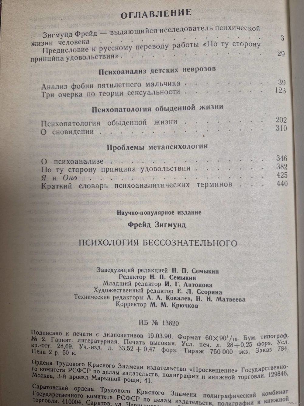 39. Зигмунд Фрейд, Психология бессознательного, Москва, Просвещение, 1990. 448 с.