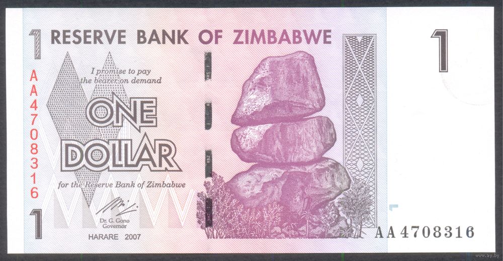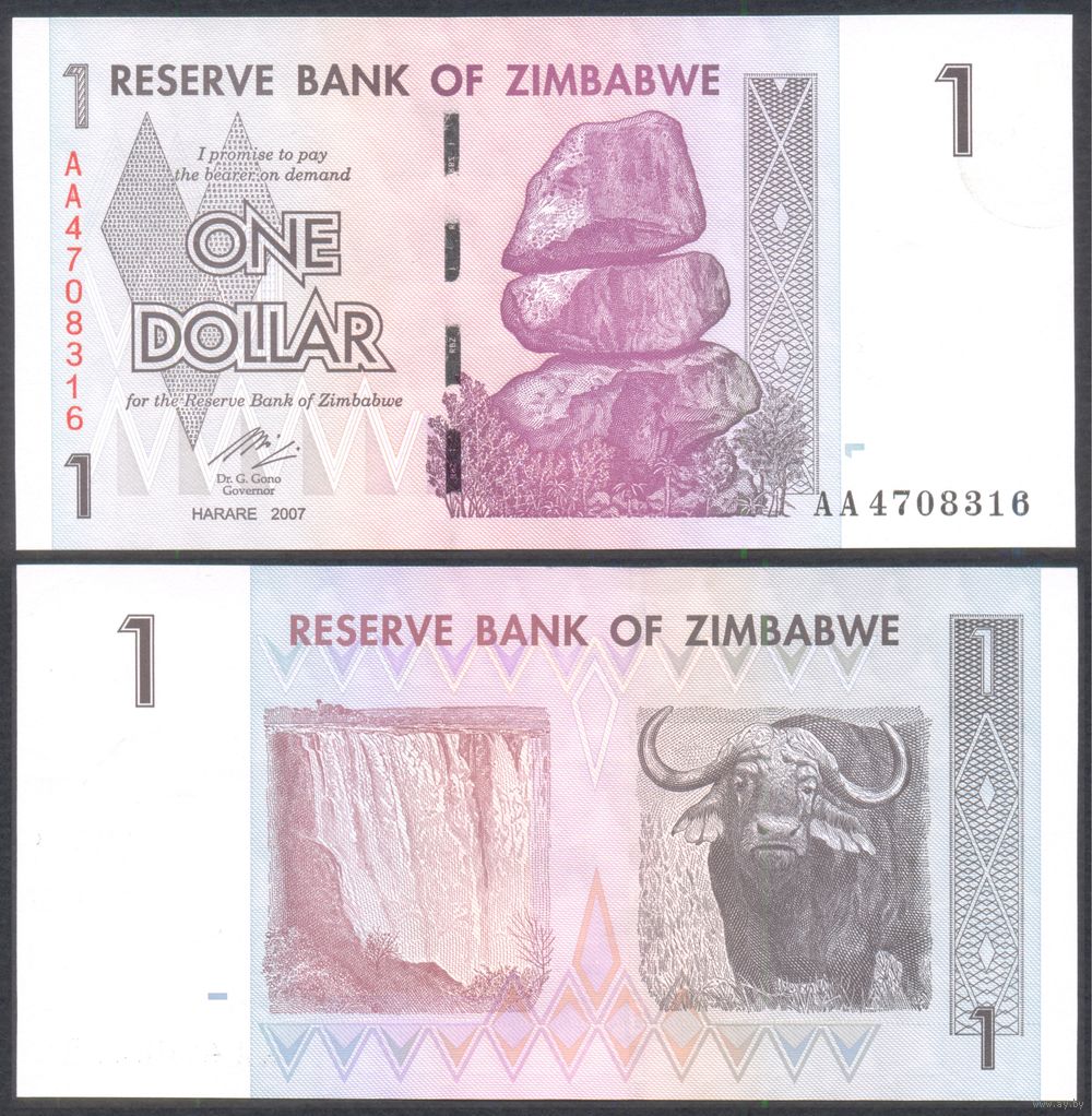 1 доллар 2007 г. P65, серия АA.