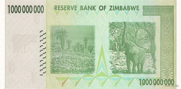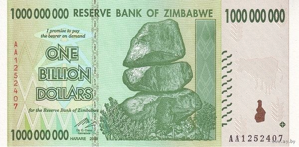 Зимбабве 1000000000 долларов образца 2008 года UNC p83