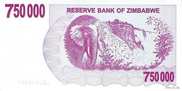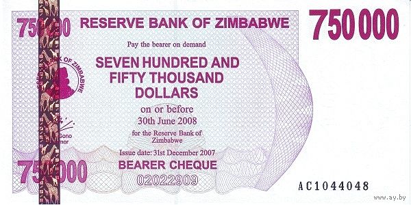 Зимбабве 750000 долларов образца 2008 года UNC p52