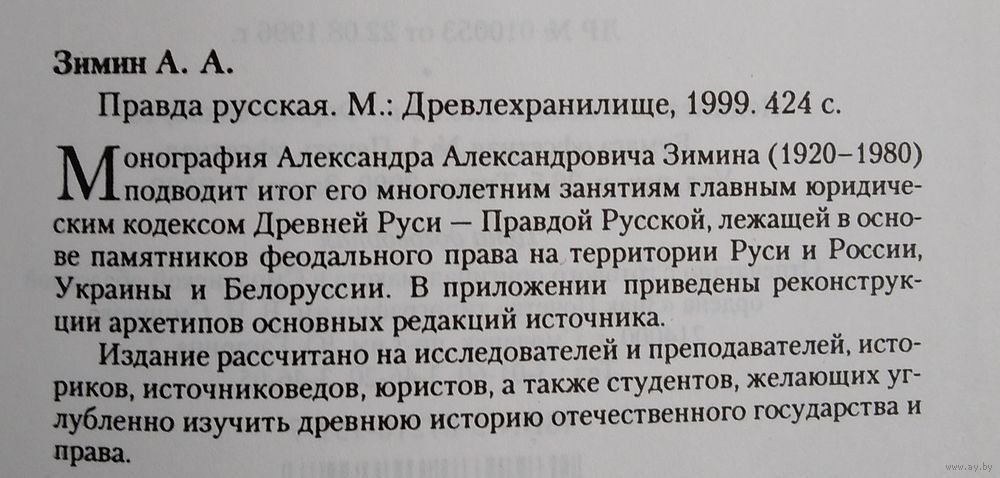 Зимин А.А. Правда Русская. Отв. редактор ак. В.Л. Янин. Институт российской истории РАН. М. Древлехранилище 1999г. 424 с. Твердый переплет, Увеличенный формат.