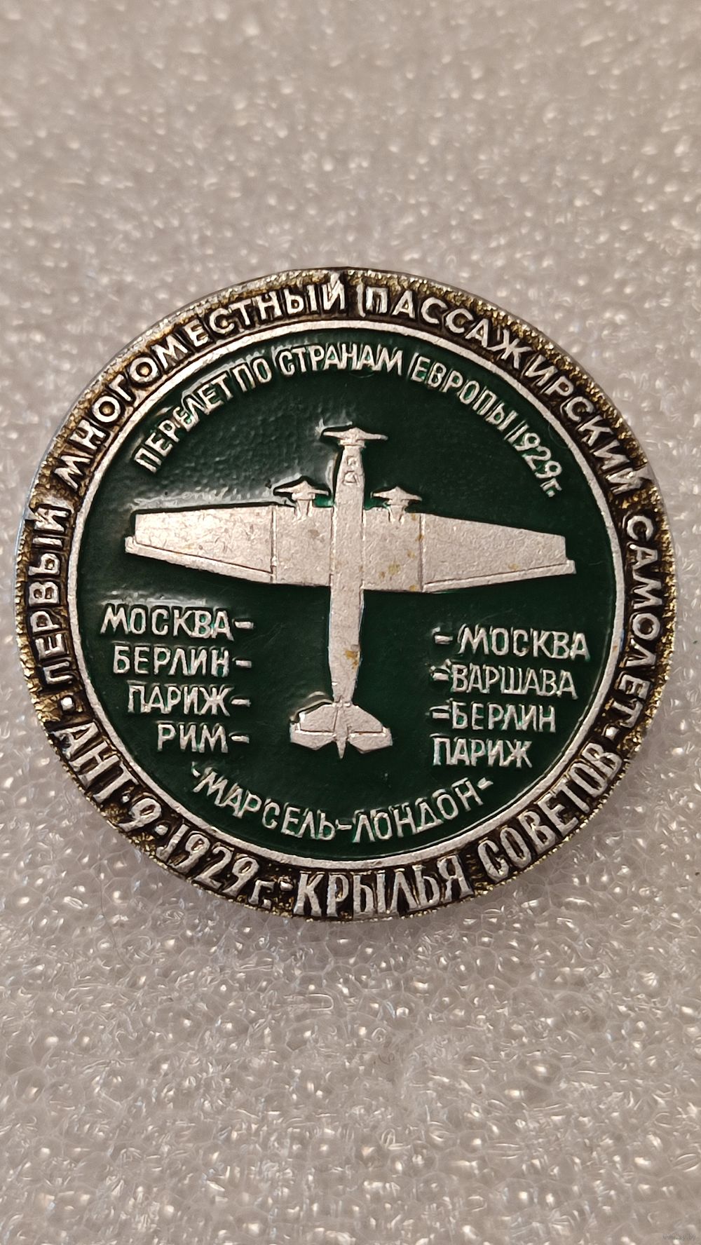 Значек знак АНТ-9 Перелет по странам Европы Авиация СССР ЭТПК,аукцион с 1 руб!