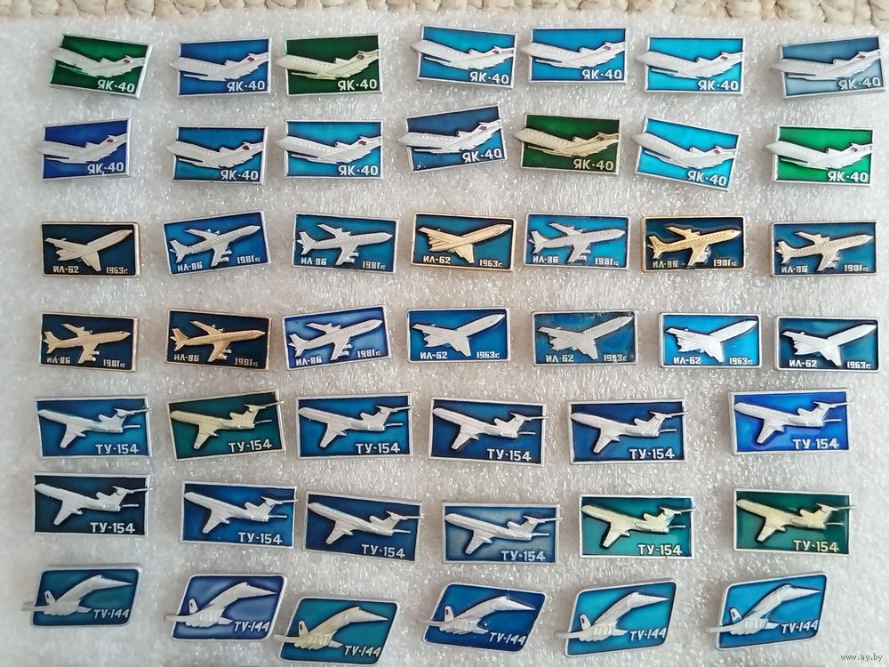 Значки. Авиация СССР. Самолёты Як-40, Ил-62, Ил-86, Ту-134, Ту-144, Ту-154. Цена указывается за один значок. #-II-07