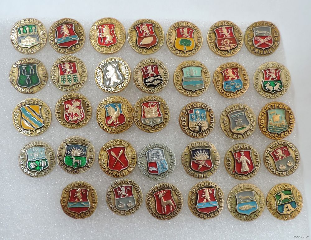 Значки "Гербы городов СССР" - 34 шт. Алюминий.