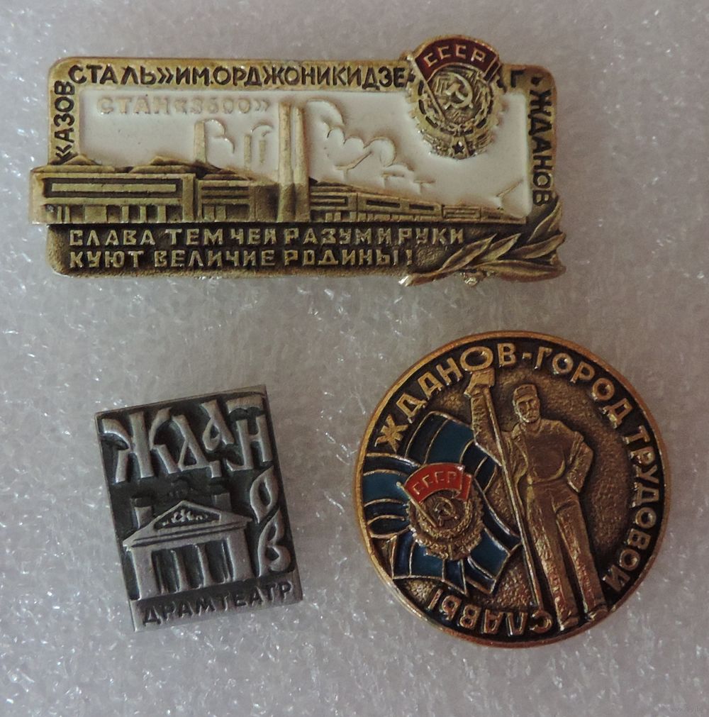Значки города "Жданов (Мариуполь)" СССР. 3 шт. Алюминий.