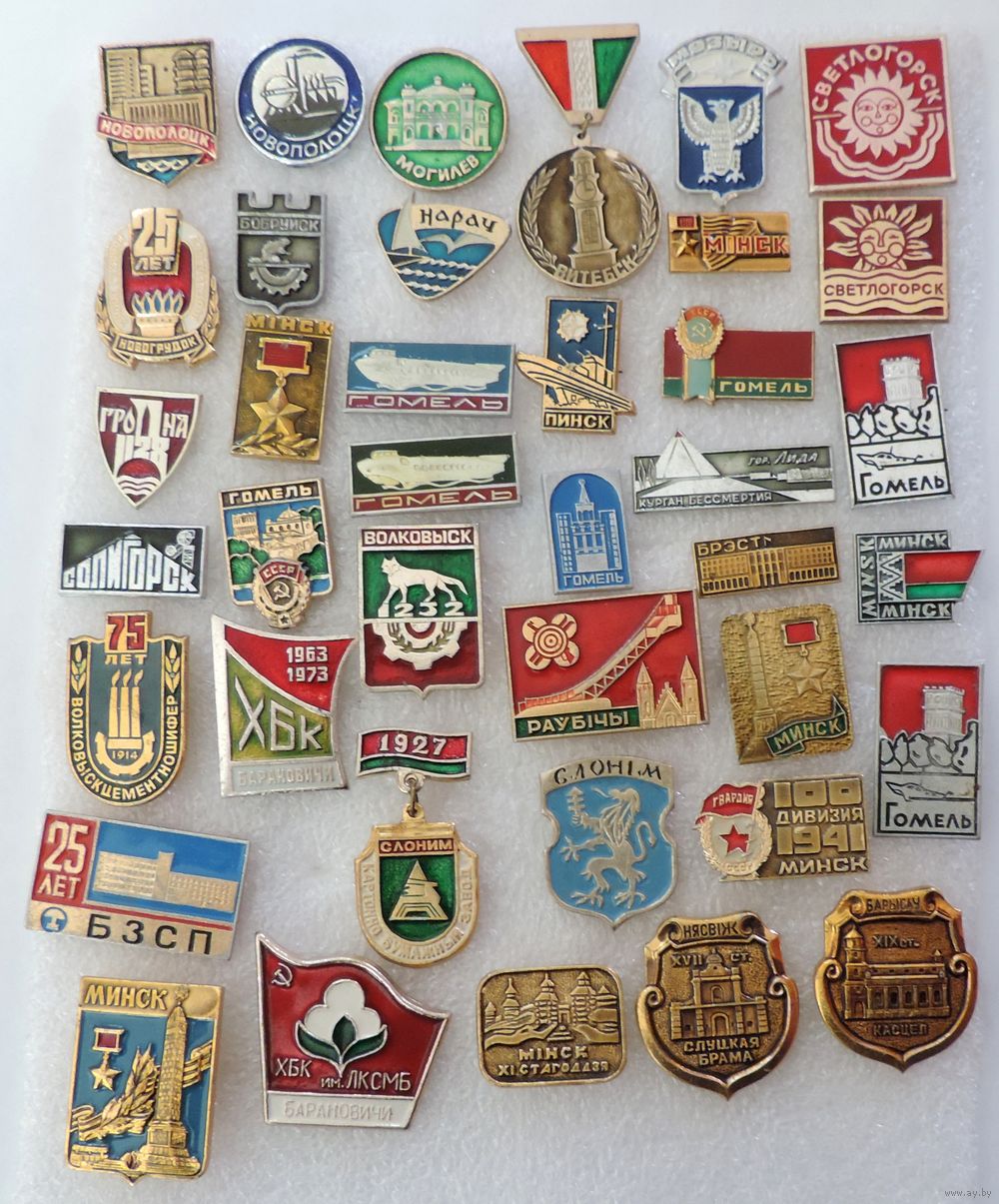 Значки городов Белоруссии. СССР - 39 шт. Алюминий.