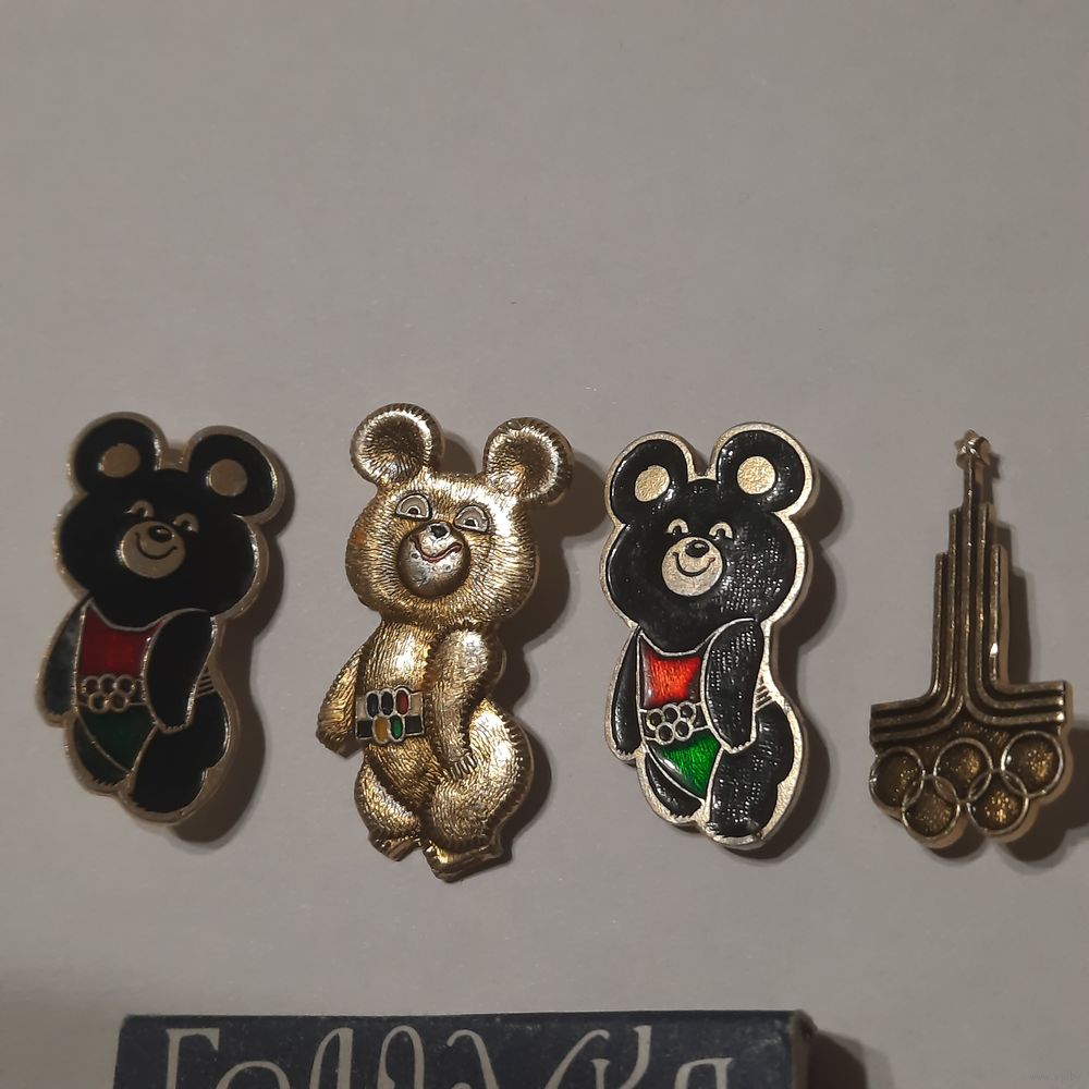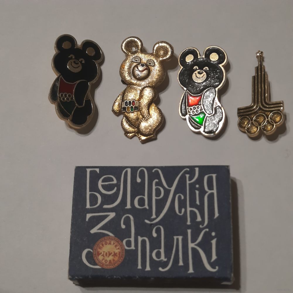 Значки Мишка олимпийский и официальная эмблема. Одним лотом.