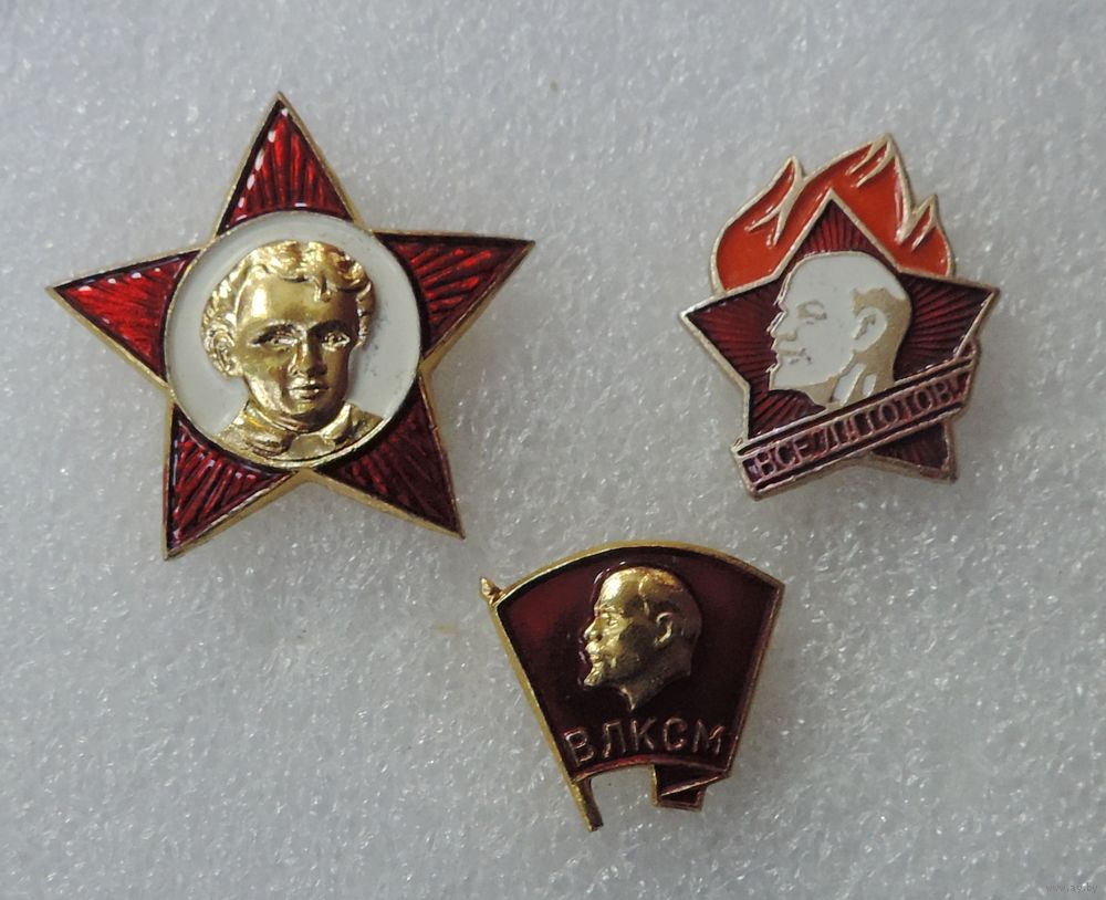 Значки "Октябрёнок, пионер и комсомолец" 3 шт. Алюминий.