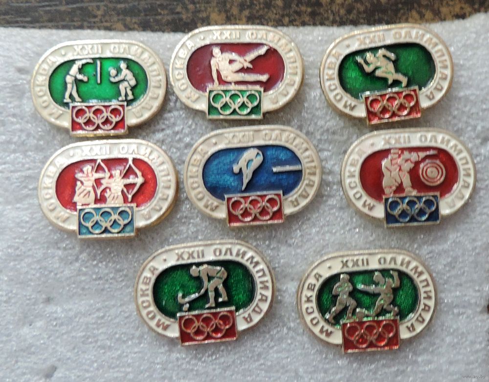 Значки "Олимпиада 1980 г." СССР - 8 шт. Алюминий.