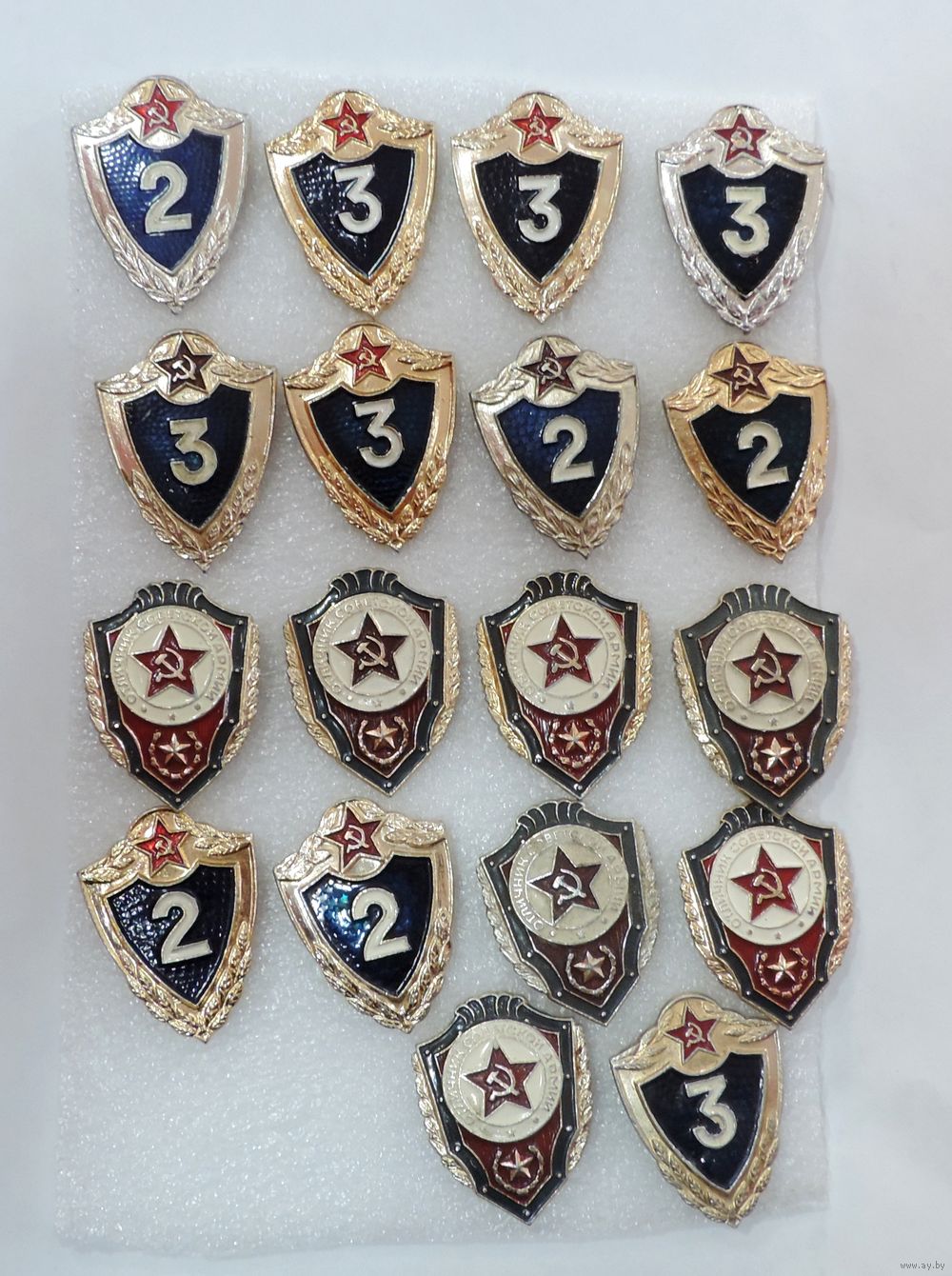 Значки "Отличник ВС СССР и знаки солдатской классности" - 18 шт. Алюминий.